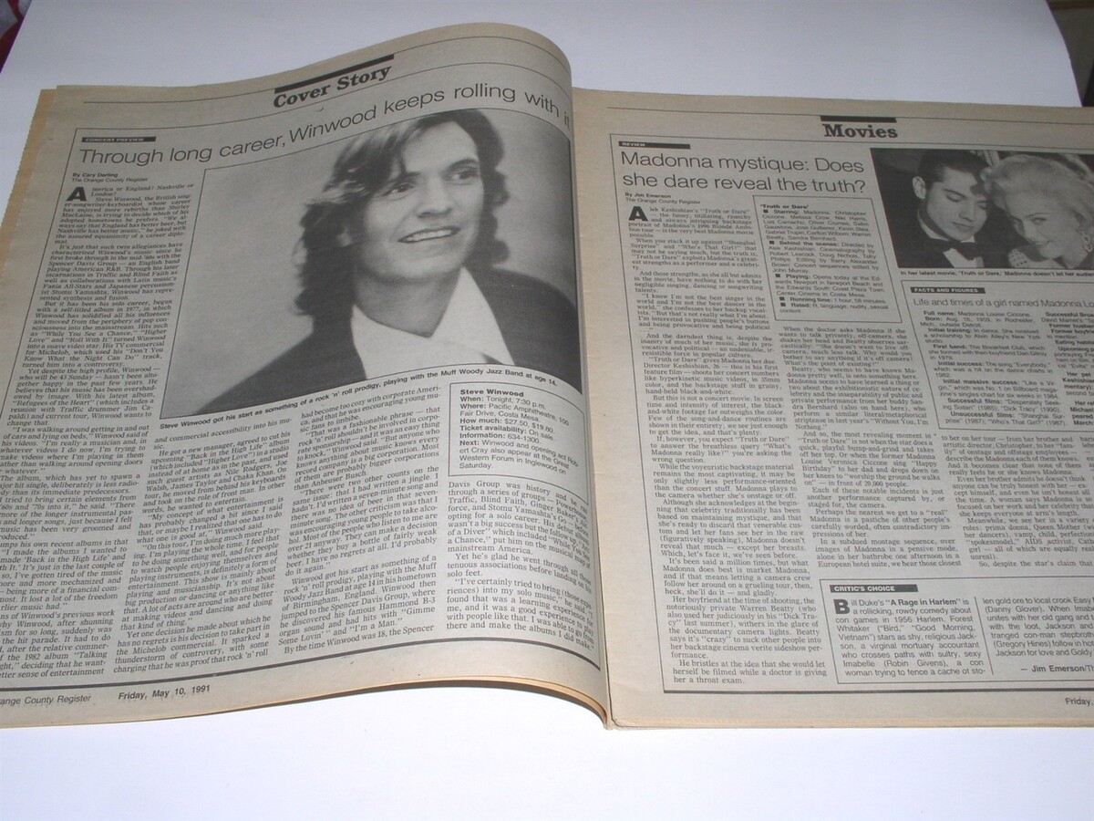 This is the May 10, 1991 issue of "Show" newspaper supplement. Cover story inside concert preview on Steve Winwood. A great item for the fan or collector.