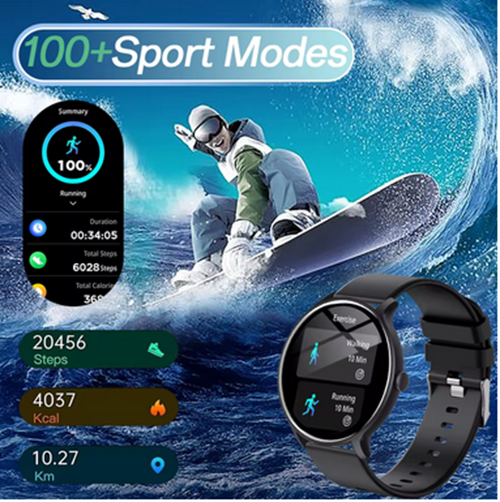 Laxasfit Smartwatch 46 mm Golden Case Black Silicone Watch