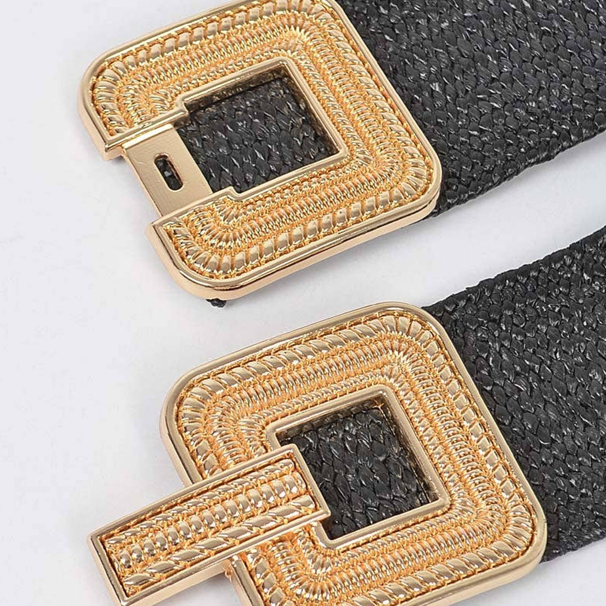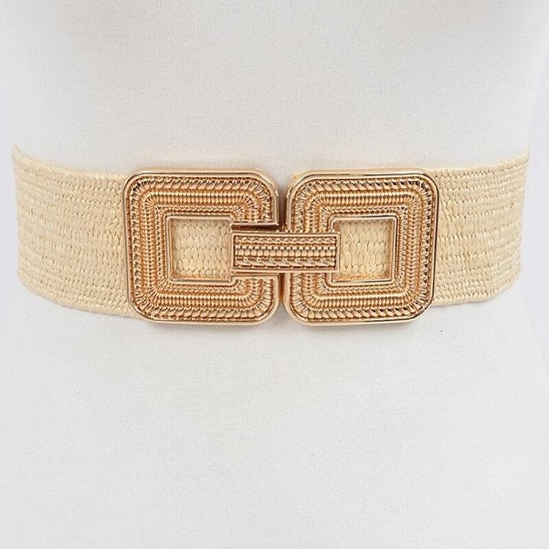 Say goodbye to rigid belts that dig in or gap awkwardly. This adjustable stretch design contours to your body, providing a flattering fit whether you're sitting at your desk, running errands, or out for dinner. The elegant gold buckle adds a touch of glamour