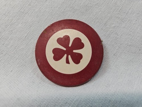 Vintage Olympic Harris Four Leaf Clover Red White Poker Chip