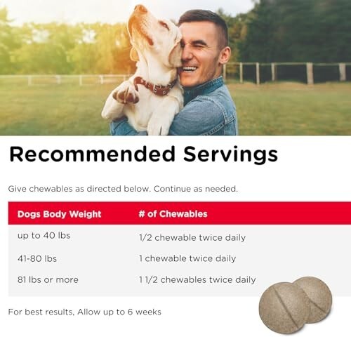 Ensure your dog's mobility and comfort with our extra strength hip and joint supplement. Formulated for dogs of all sizes, especially medium to large breeds and overweight dogs, this supplement provides comprehensive joint support. Each chewable tablet delivers 500 mg of glucosamine for dogs, 400 mg of chondroitin, 50 mg of MSM, and vitamin C. These ingredients work synergistically to maintain healthy joint function, support cartilage health, and promote flexibility. Ideal for dogs experiencing joint discomfort, stiffness, or arthritis pain relief needs. Our joint supplement for dogs is designed to address common mobility issues, offering effective dog pain relief anti-inflammatory benefits. Regular use can help alleviate joint pain relief concerns, making it a valuable addition to your dog essentials. The chewable tablets are liver-flavored, ensuring easy administration and acceptance by your pet. Whether you're managing dog arthritis pain relief or seeking preventive care, this supplement fits seamlessly into your dog supplies. Incorporate this supplement into your dog vitamins and supplements regimen to support overall joint health. It's also suitable for inclusion in puppy supplies, aiding in the development of strong joints in growing dogs. Our product is manufactured in the USA, adhering to stringent quality standards. It's a reliable choice for pet owners seeking effective glucosamine chondroitin for dogs solutions. Add this to your collection of dog accessories and pet supplies to ensure your furry friend's well-being. Choose our hip and joint supplement dogs trust for maintaining active lifestyles. It's an essential component of your dog stuff, supporting your pet's health and happiness. DOG HIP JOINT SUPPLEMENT: This hip and joint supplement for dogs supports long-term joint health, flexibility, and comfort; Ideal for senior dogs or dogs with arthritis pain relief needs; A must-have in your dog supplies for healthy mobility ADVANCED STRENGTH FORMULA: Designed for all dogs, especially large breed or overweight dogs; Each tablet delivers glucosamine, chondroitin, MSM, and vitamin C to support joint function, flexibility, and comfort; A dog joint supplement you can trust GREAT TASTE: Joint pain relief never tasted so good?our liver-flavored chewable tablets are craved by dogs; These dog supplements support healthy hips and joints, promote mobility, and are a tasty addition to your daily dog vitamins and supplements MADE BY VETS: Nutri-Vet products are formulated by veterinarians and crafted in the USA with high-quality ingredients?trusted dog supplements and pet supplies designed to support your dog?s health, from puppy essentials to senior dog vitamins USA MADE: Proudly made in the USA using premium globally sourced ingredients, these trusted hip joint dog vitamins and supplements meet NASC standards?an essential part of your dog supplies, dog essentials, and overall pet supplies routine