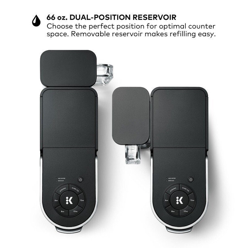 MULTISTREAM TECHNOLOGY: Extracts more flavor and aroma* in every brew. *vs Keurig leading K-Classic brewer with The Original Donut Shop Coffee K-Cup pod CUSTOMIZE YOUR CUP: Brew a stronger cup, or brew hot over ice for refreshing iced coffee. BREWS MULTIPLE CUP SIZES: Brew a 6, 8, 10, or 12 oz. cup. 66 oz. DUAL-POSITION RESERVOIR: Choose the perfect position for optimal counter space. Removable reservoir makes refilling easy. FAST FRESH-BREWED: Coffee made in minutes. BACK-TO-BACK BREWING: Immediately brew a second cup, no need to wait for reheating. TRAVEL MUG FRIENDLY: Accommodates travel mugs up to 7? tall. SIMPLE BUTTON CONTROLS: Just insert a pod, select your desired cup brew size, and get fast fresh brewed, delicious coffee in minutes. MAINTENANCE ALERT: Reminds you to descale after every 250 brews. COMPATIBLE WITH THE MY K-CUP UNIVERSAL REUSABLE COFFEE FILTER: Brew your own ground coffee (sold separately). One coffee maker