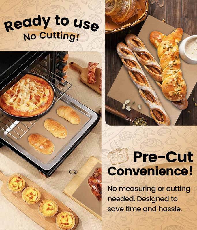 Versatile Kitchen Essential: Our disposable parchment paper liner is a must-have for baking cookies, cakes, macarons, bread, pizza, cupcakes, and even hot sandwiches or gift wrapping. It's also perfect for air fryers, sublimation heat presses, and as oven liners for the bottom of the oven. Whether you're a professional baker or a home cook, our parchment paper sheets are a versatile and essential kitchen tool.