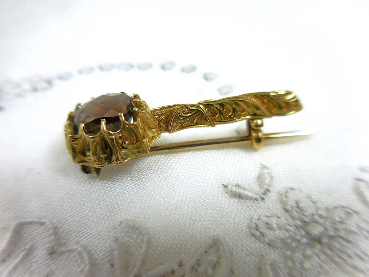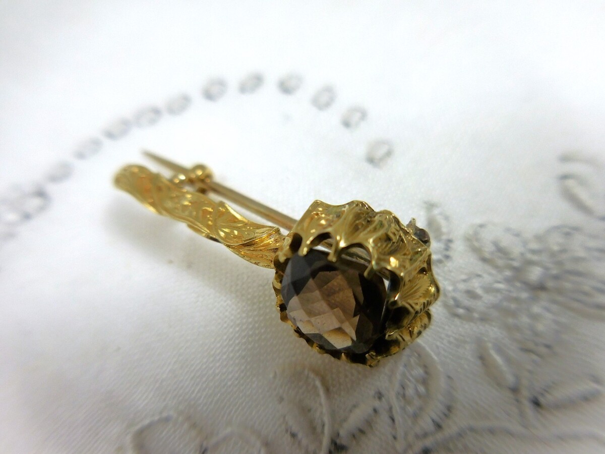 Small 18K Gold Victorian Georgian Pin Smoky Quartz Stone