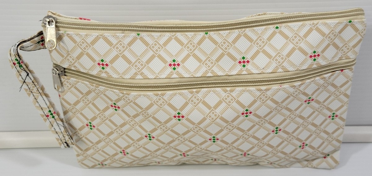 N) Women's Vinyl Clutch Zippered Travel Lunch Carry Bag 11" x 7"