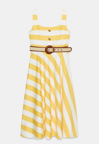 Zara White Yellow Cotton Blend Belted Striped Midi Dress Women BNWT 3293/054