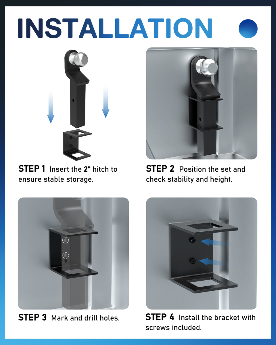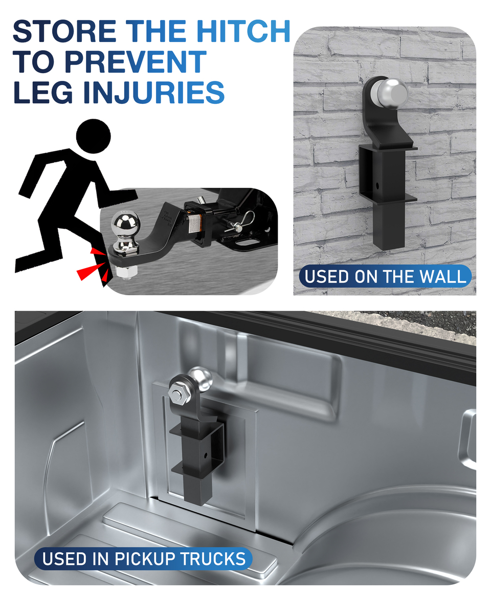 2" HITCH STORAGE: Store the 2" trailer hitch securely when not in use. No more let it roll around in the cab or trunk, or gather dust in the garage. Keep the trailer hitches organized and ready for use whenever it's time to tow