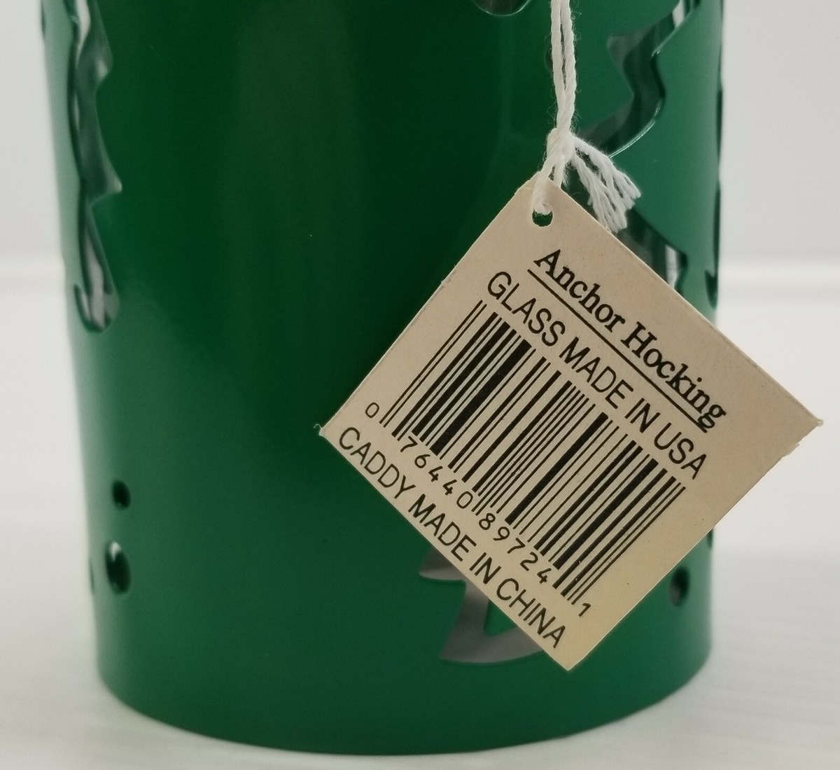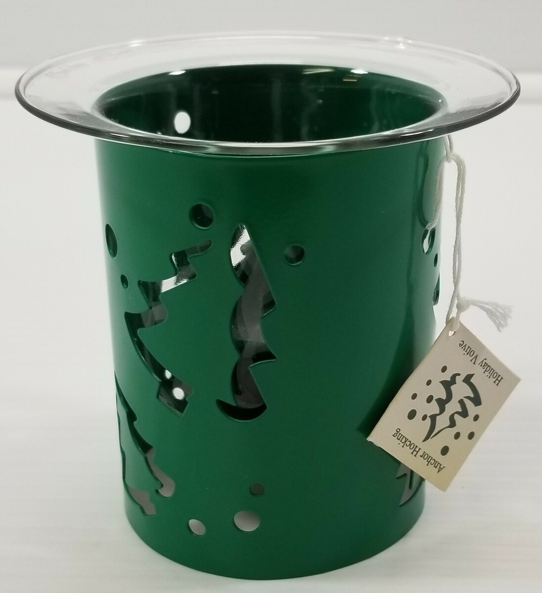 MN) Anchor Hocking Holiday Votive Candle Holder With Green Metal Caddy