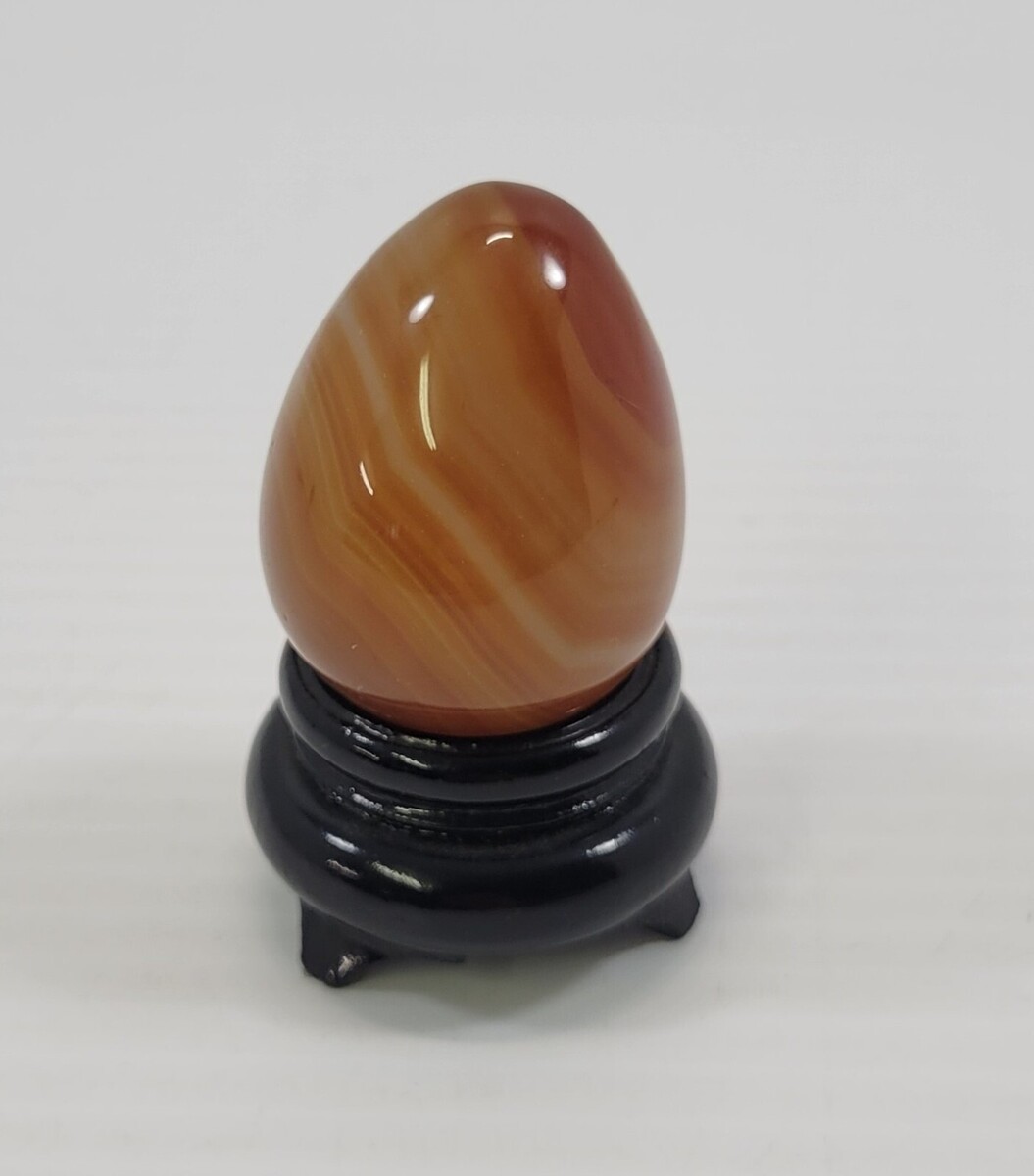 *C51) Protective Evil Eye Agate Polished Smooth Egg Stone on Wooden Base