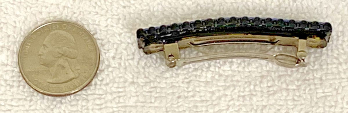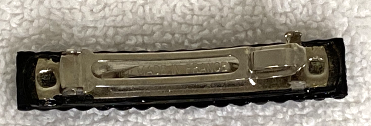 Vintage Style France Marked Black Metal Blue Rhinestones Girls Hair Barrette
