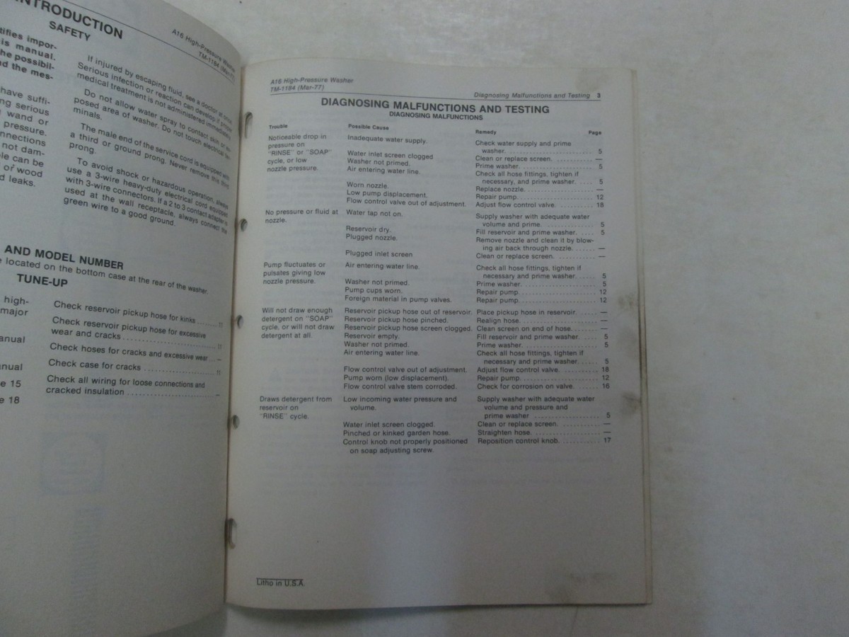 John Deere A16 High Pressure Washer Technical Manual MINOR STAINS FACTORY OEM
