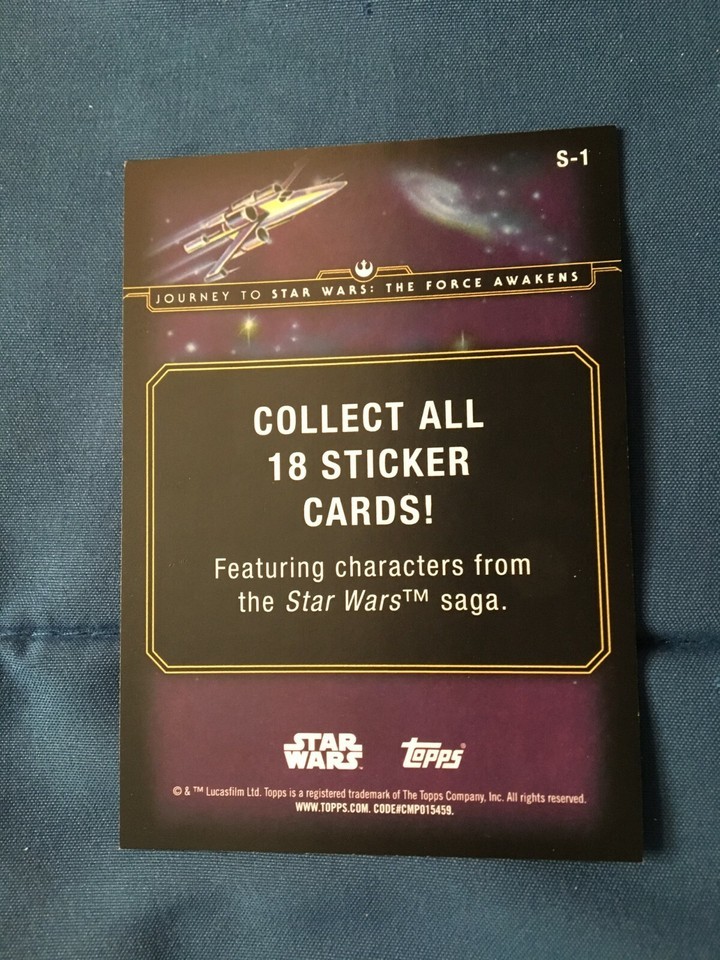 Journey to Star Wars: The Force Awakens Sticker Cards S-1 Luke *NEW* t1