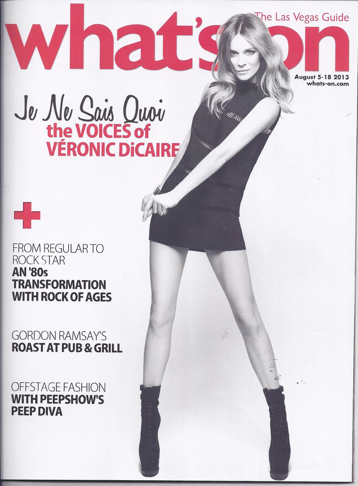 This is the Aug 5-18 2013 issue of WHAT'S ON Magazine Las Vegas featuring The Voices of VERONIC DICAIRE, at the Bally's Hotel. Veronic is a Canadian Franco-Ontarian singer and imitator.