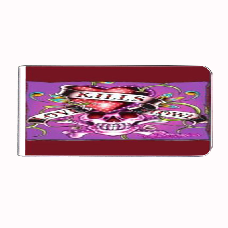 Love Kills Slowly Skull Tattoo Money Clip Rectangle 034