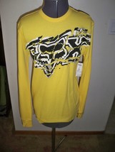 MEN'S GUYS FOX RACING LONG SLEEVE THERMAL SHIRT YELLOW BLACK LOGO NEW $35