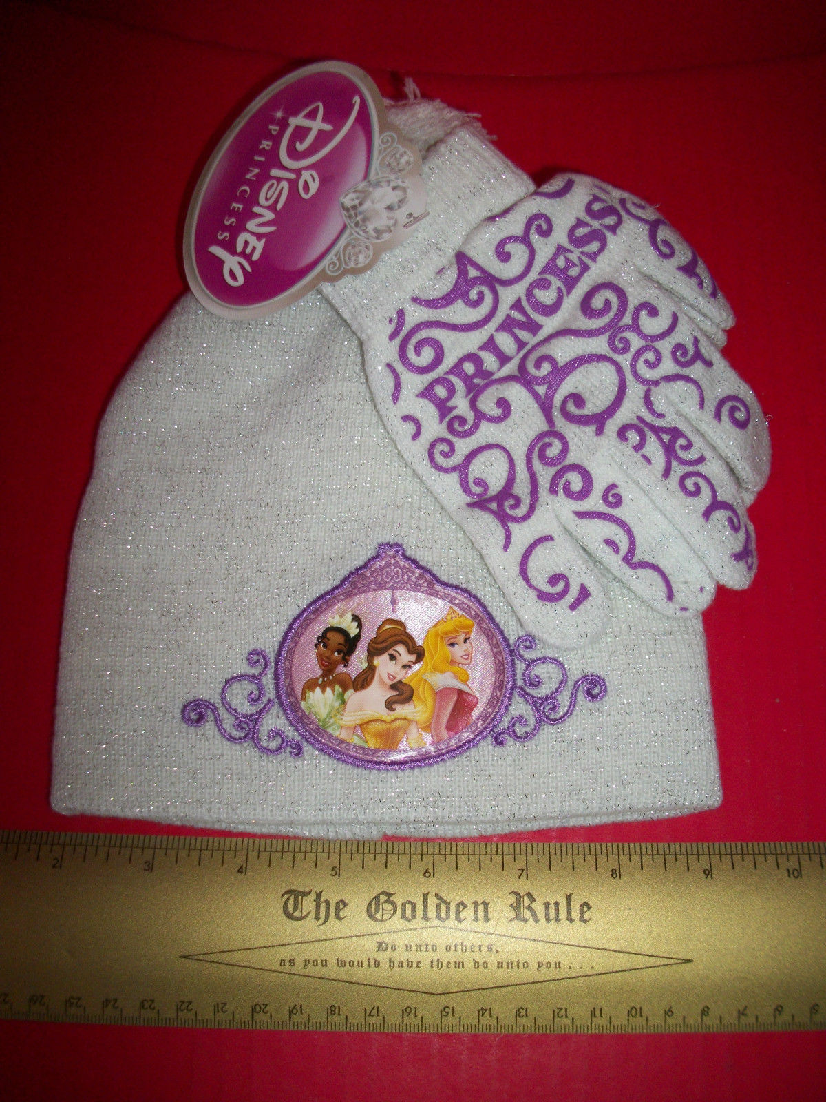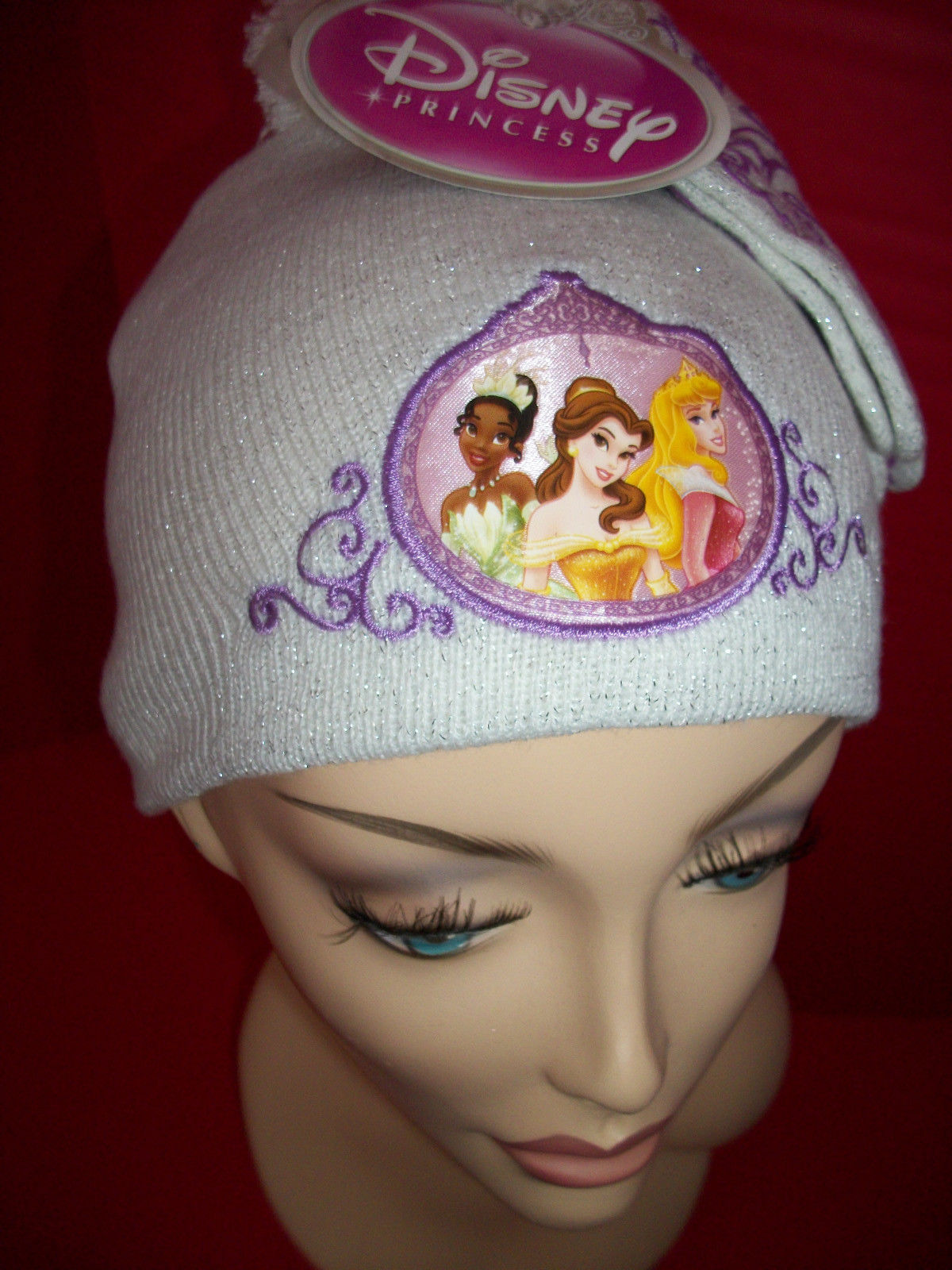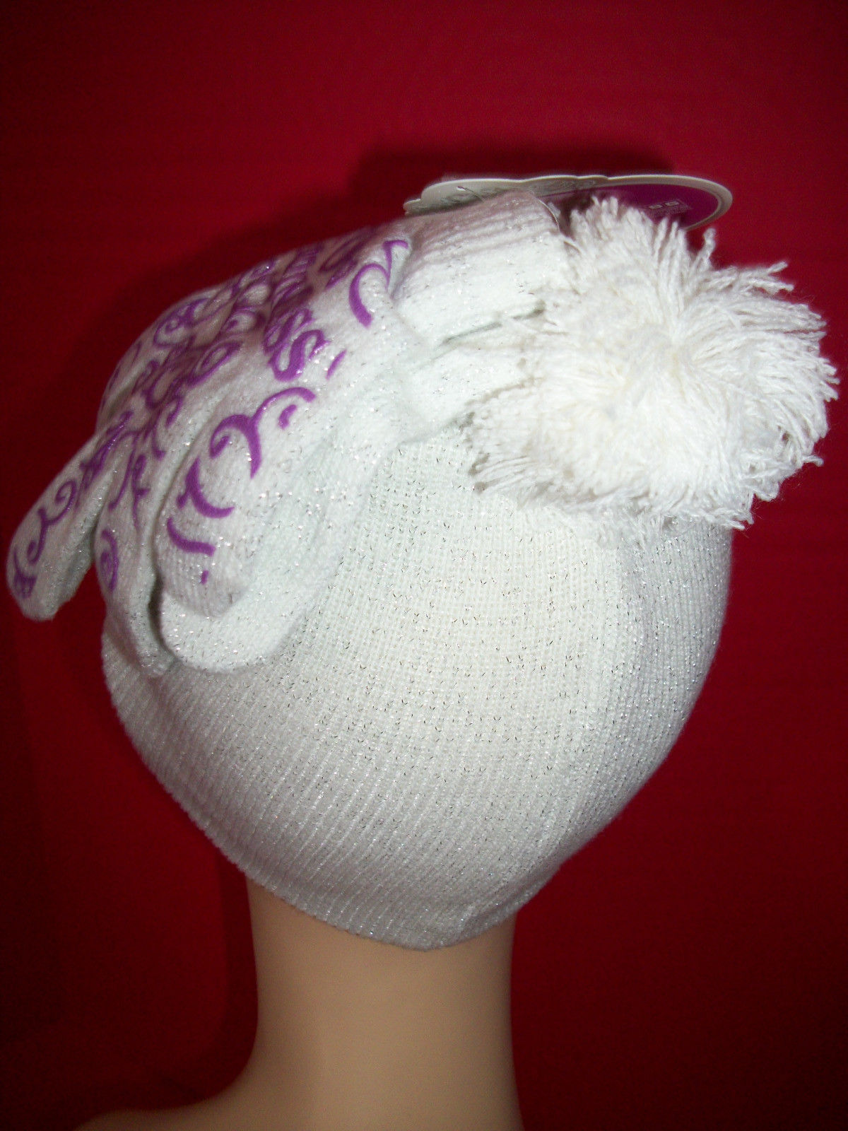 Disney Princess Girl Clothes Hat Princesses Pompom Cap Glove White Accessory Set