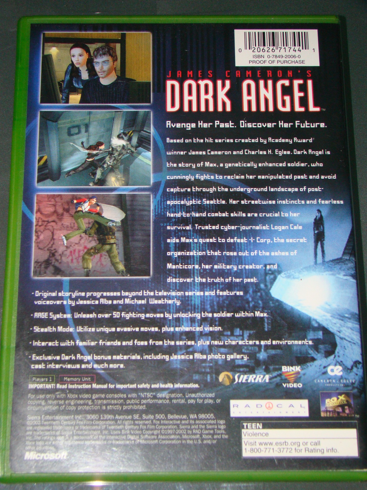 Item: XBOX - JAMES CAMERON'S DARK ANGEL (Complete with instructions)