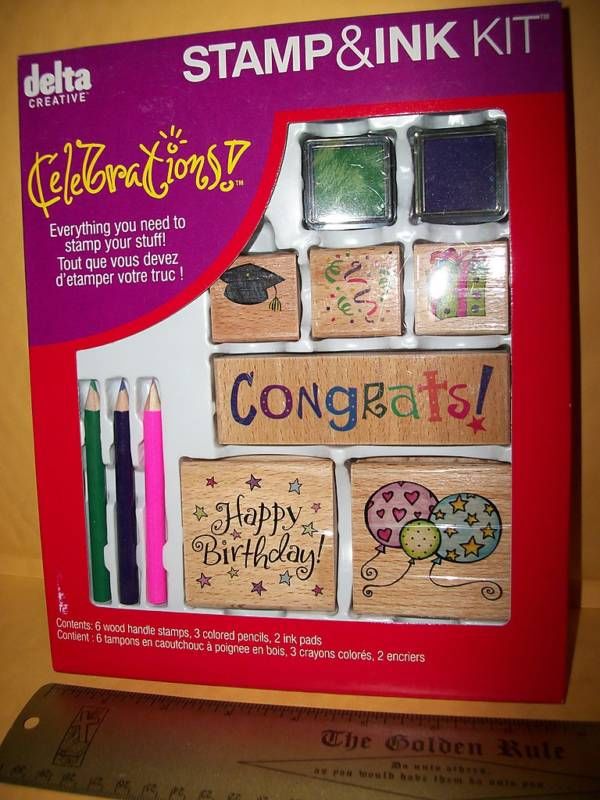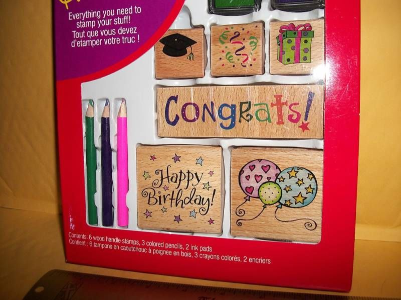 Craft Gift Stamping Kit Rubber Stamp Party Celebration Activity Set Ink Birthday