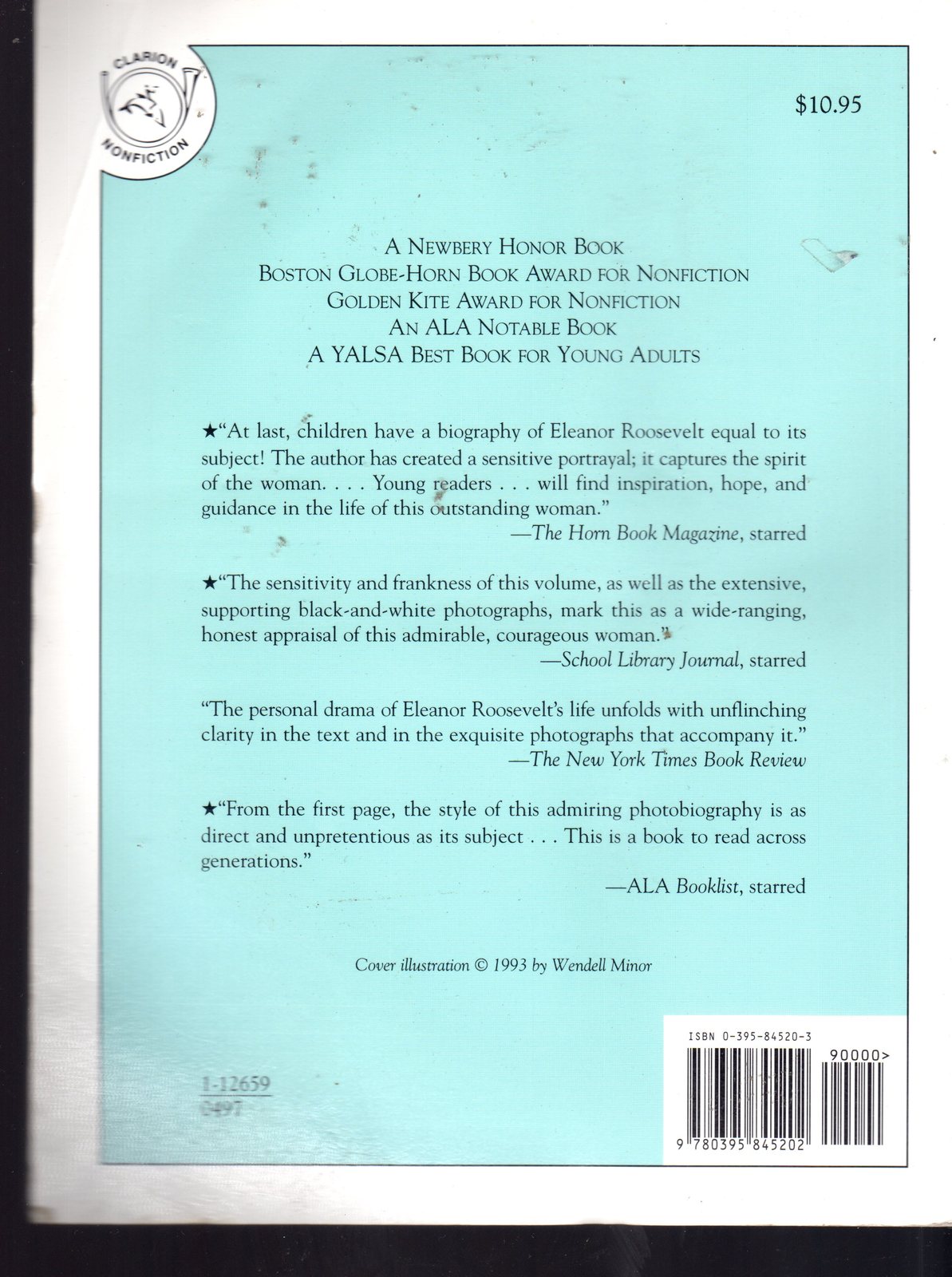 The intriguing story of Eleanor Roosevelt traces the life of the former First Lady from her early childhood through the tumultuous years in the White House to her active role in the founding of the United Nations after World War II. A Newberry Honor Book.