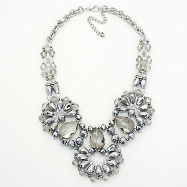 Black Diamond Crystal Hematite Silver Rhodium Bib Collar Pendant Necklace Earri