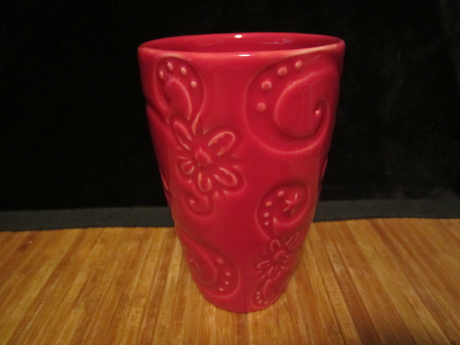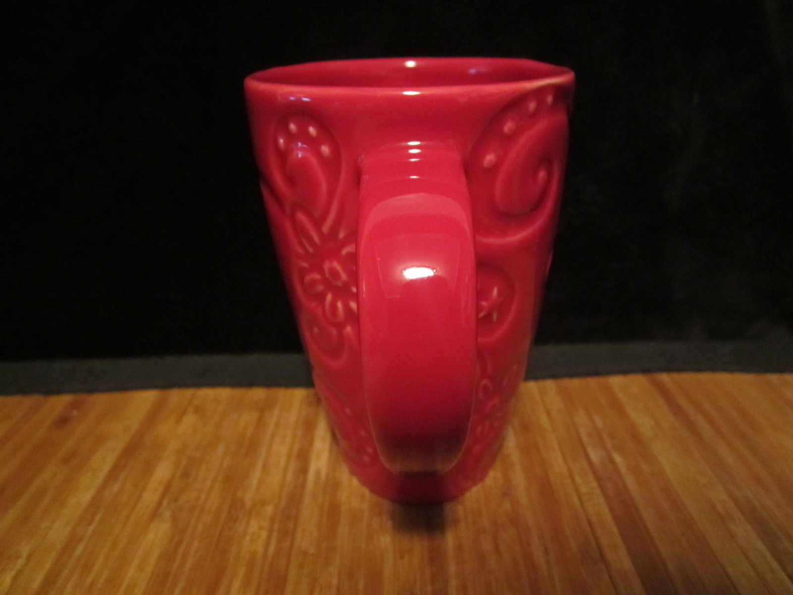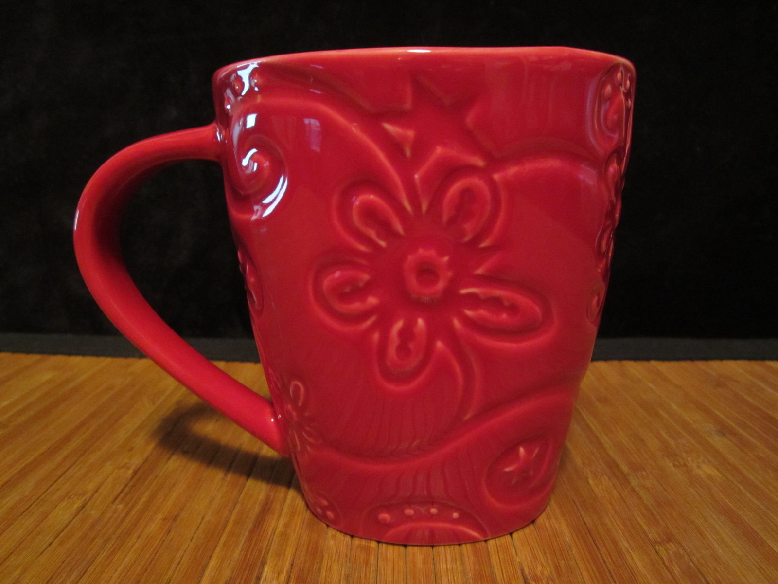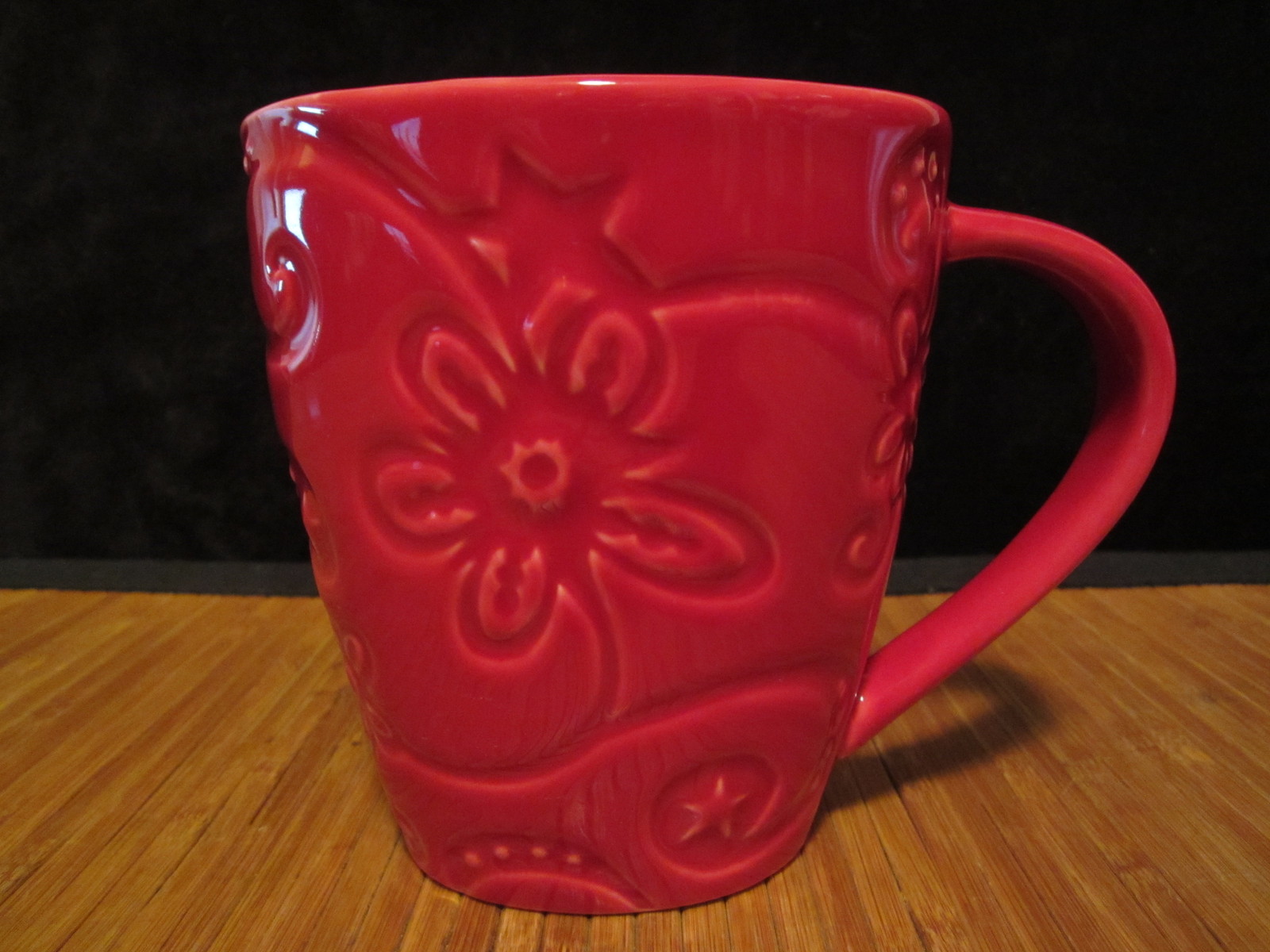 2009 Oval Flowers & Stars Starbucks Limited Coffee Mug Tea Cup Red Embossed 2009