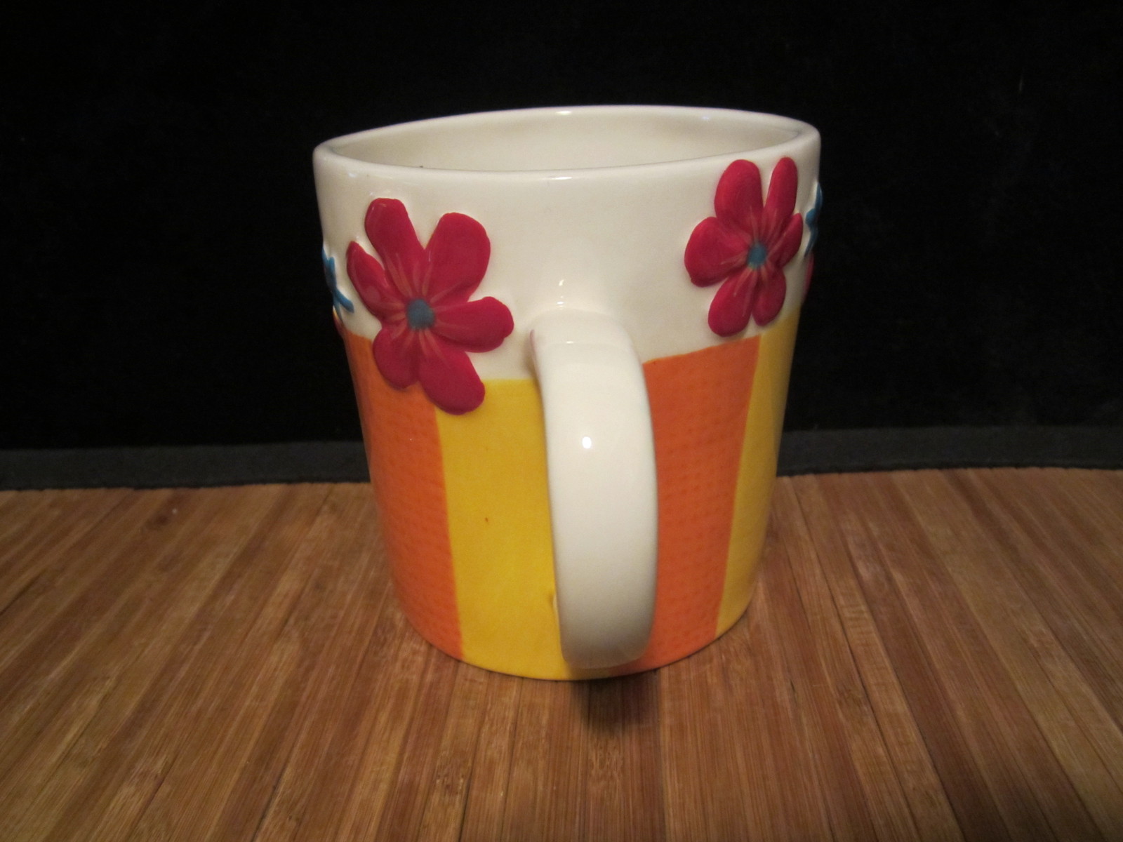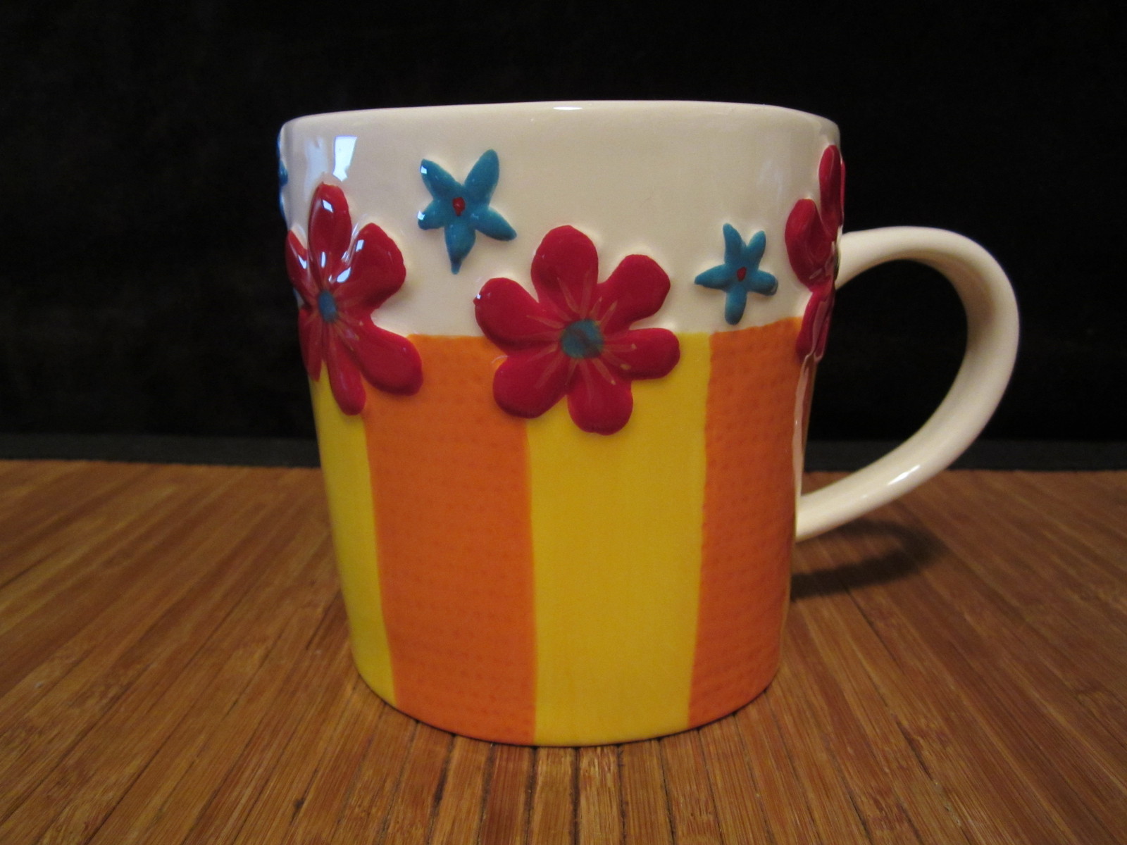 2007 Starbucks Coffee Mug Tea Cup Hand Painted Flowers & Stars Stripes 14 oz