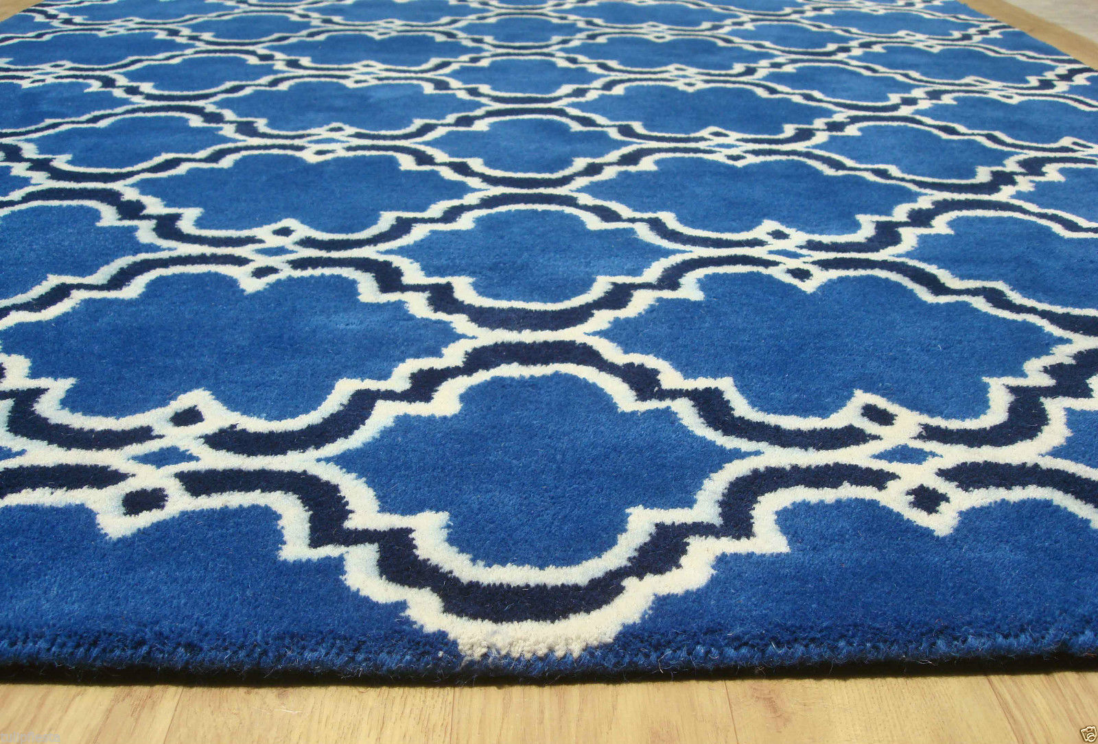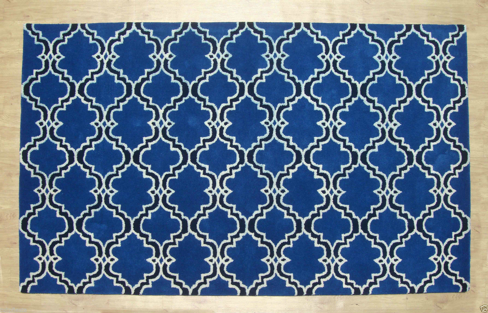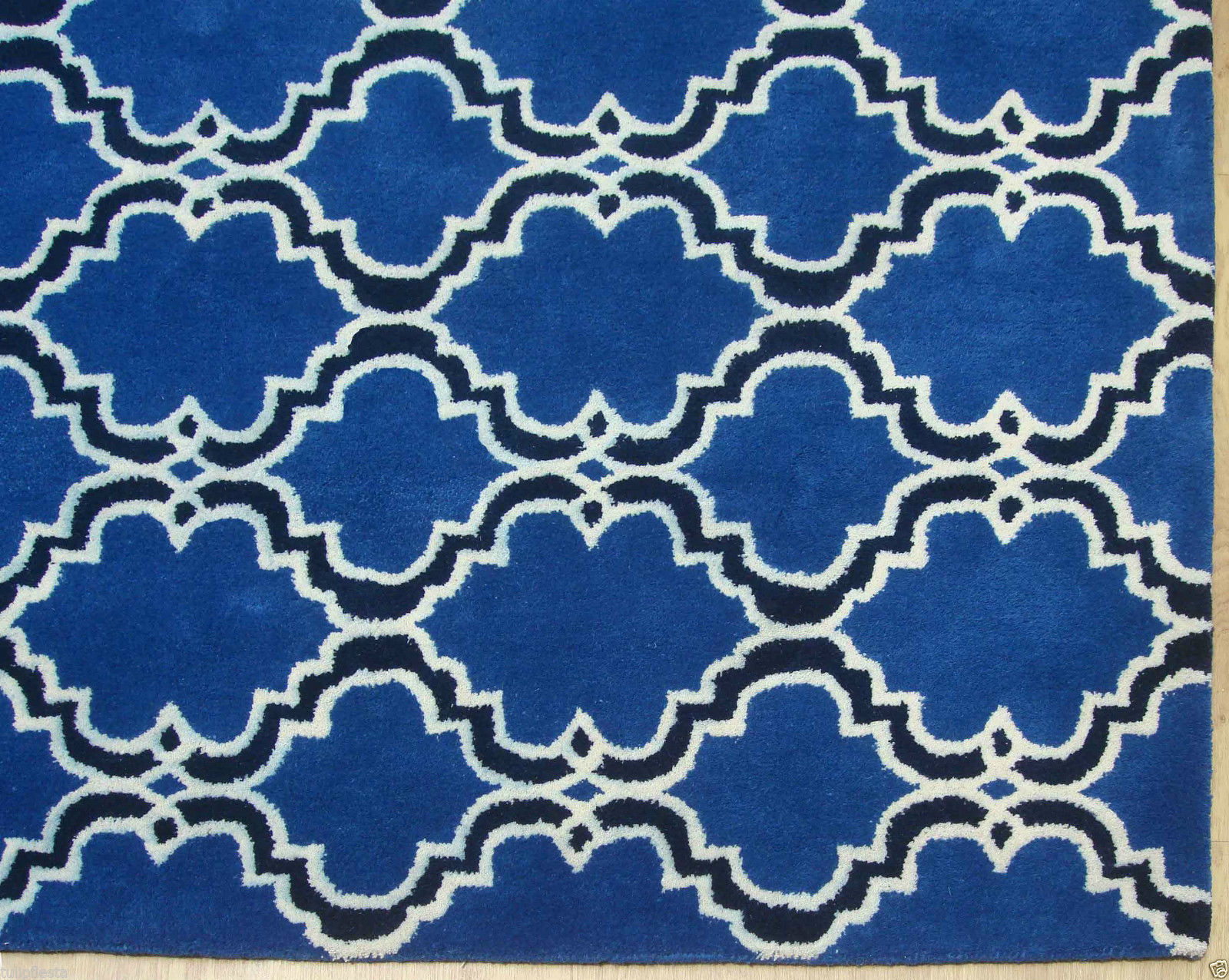 FRENCH ACCENT SCROLL TILE INDIGO 8' x 10' HANDMADE PERSIAN STYLE WOOL AREA RUG