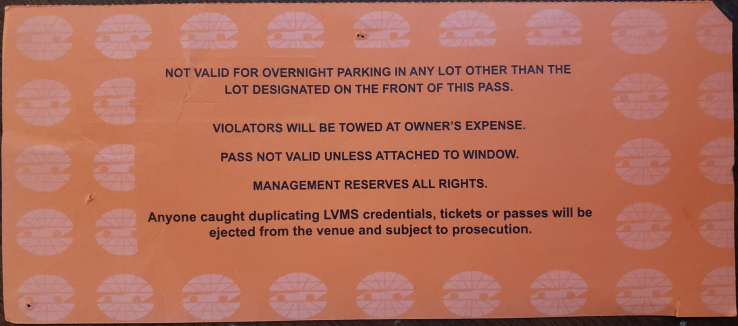 LAS VEGAS Motor Speedway Burn Out RV Tow April 2007 Car Pass Stub
