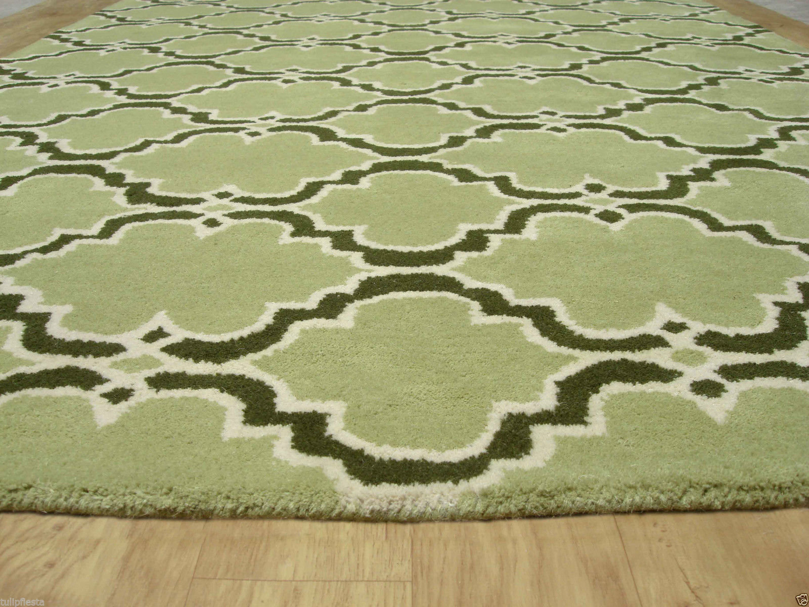 FRENCH ACCENT SCROLL TILE GREEN 8X10 HANDMADE PERSIANSTYLE WOOL AREA RUG