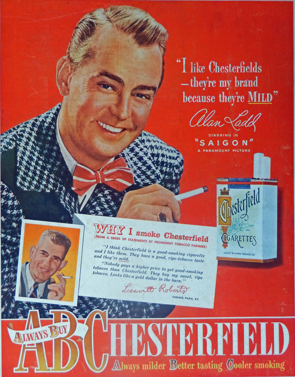 Chesterfield Cigarettes, Print Ad. Alan Ladd