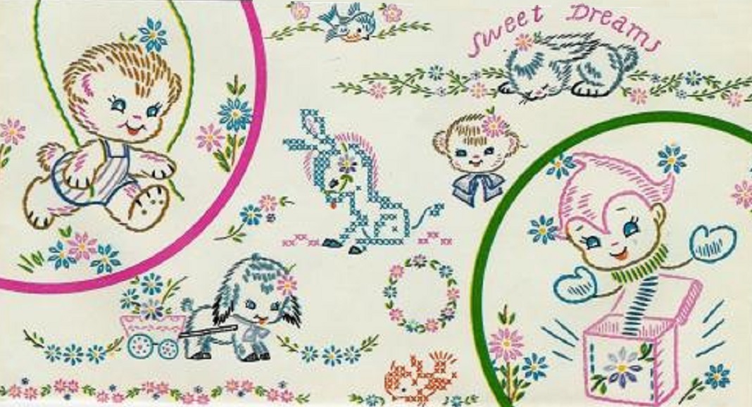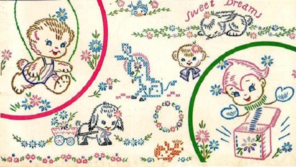 This is for a black and white copy taken from my vintage original #274 transfer pattern .For embroidery.You will receive a copy of all 30 design motifs as well as color stitch suggestions.Motifs feature: wee little animals and dainty flowers for baby nursery clothing or decorating...Motifs average 2" x 3" in size ........To use this copy you will need to either trace the design with a transfer pen and then iron onto fabric or trace it with a pencil directly onto fabric using a light source.(completed linens not for sale)****************This material comes from a public domain source.{Printed in 1950's without copyright notice and entered public domain in 1980's}This is a photocopy of my original pattern/linen which is in the public domain and does not infringe upon any copyrights RE:COPYRIGHTS My reproductions are adapted from original vintage transfers/patterns/linens in my personal collection.The ORIGINALS are now in the Public Domain because their copyright has expired....Because of alterations made by my editing these reproduction are entirely copyrighted by craftycharlie's and may not be recopied in any media.Purchases of these reproductions does not constitute permission to copy or reproduce. All images have been cleaned, restored / edited.. *********