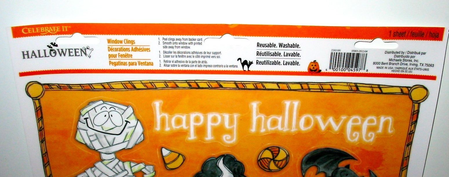 HALLOWEEN Window Clings By Celebrate It Washable Reusable 15" x 12" Monster 46U. Great decor for Halloween parties.
