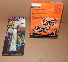 Halloween Masquerade Masks felt Kit 229pc 8 Masks Hair Body Glitter Glows 39X .