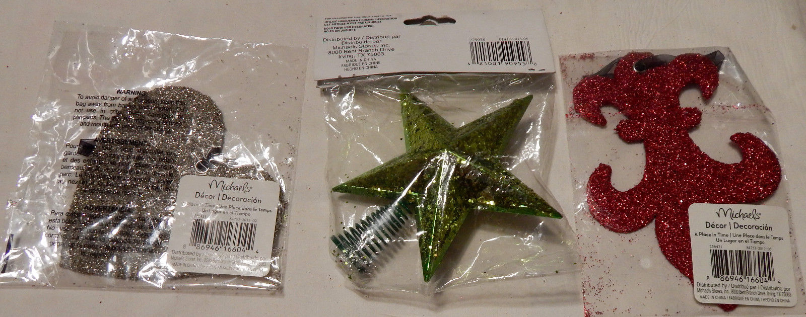 Christmas Star Tree Topper & Glitter Ornaments Silver & Red 3 1/2" x 4 1/2" 30D