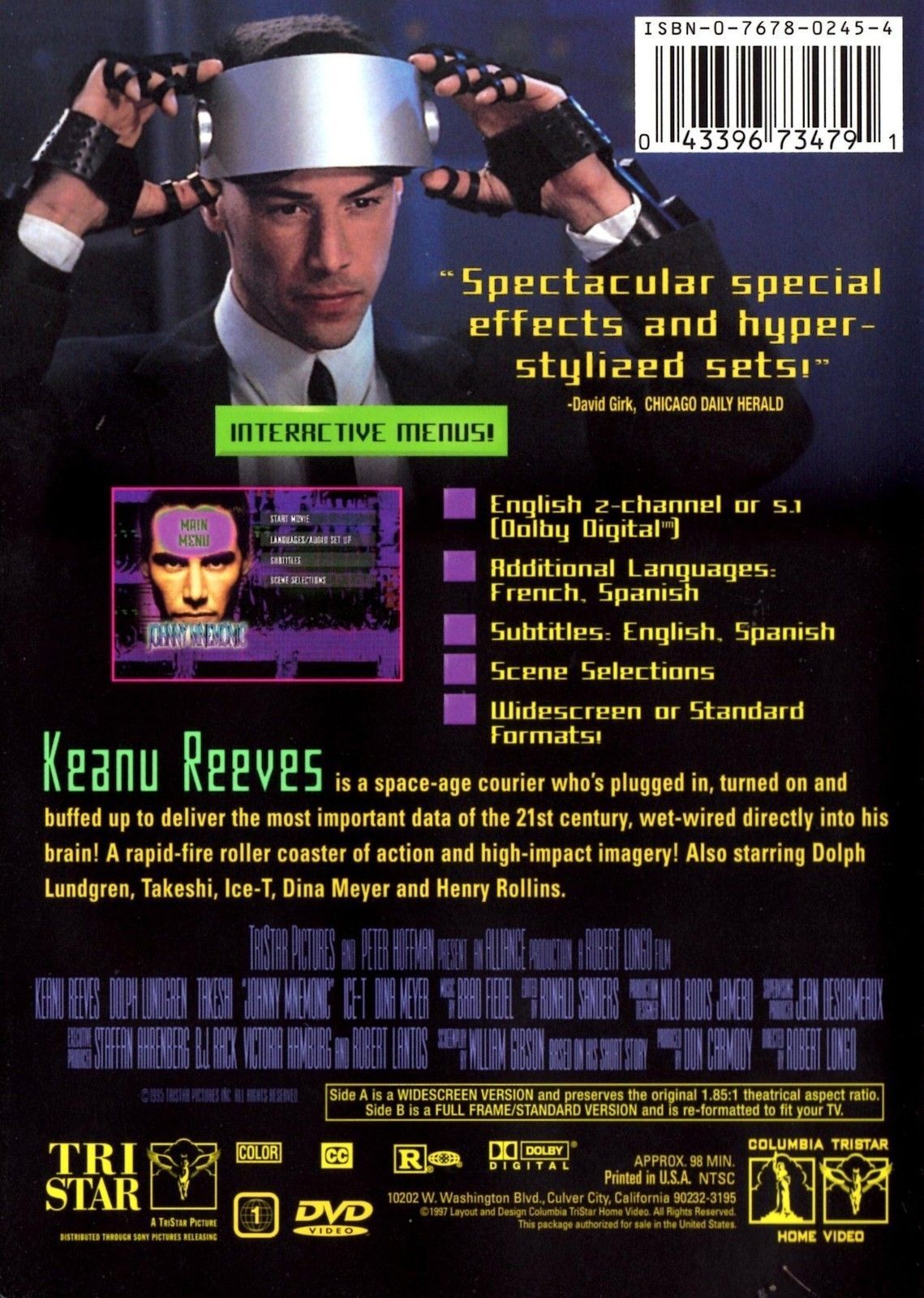 This is a previously viewed DVD of the rare science fiction classic JOHNNY MNEMONIC, staring