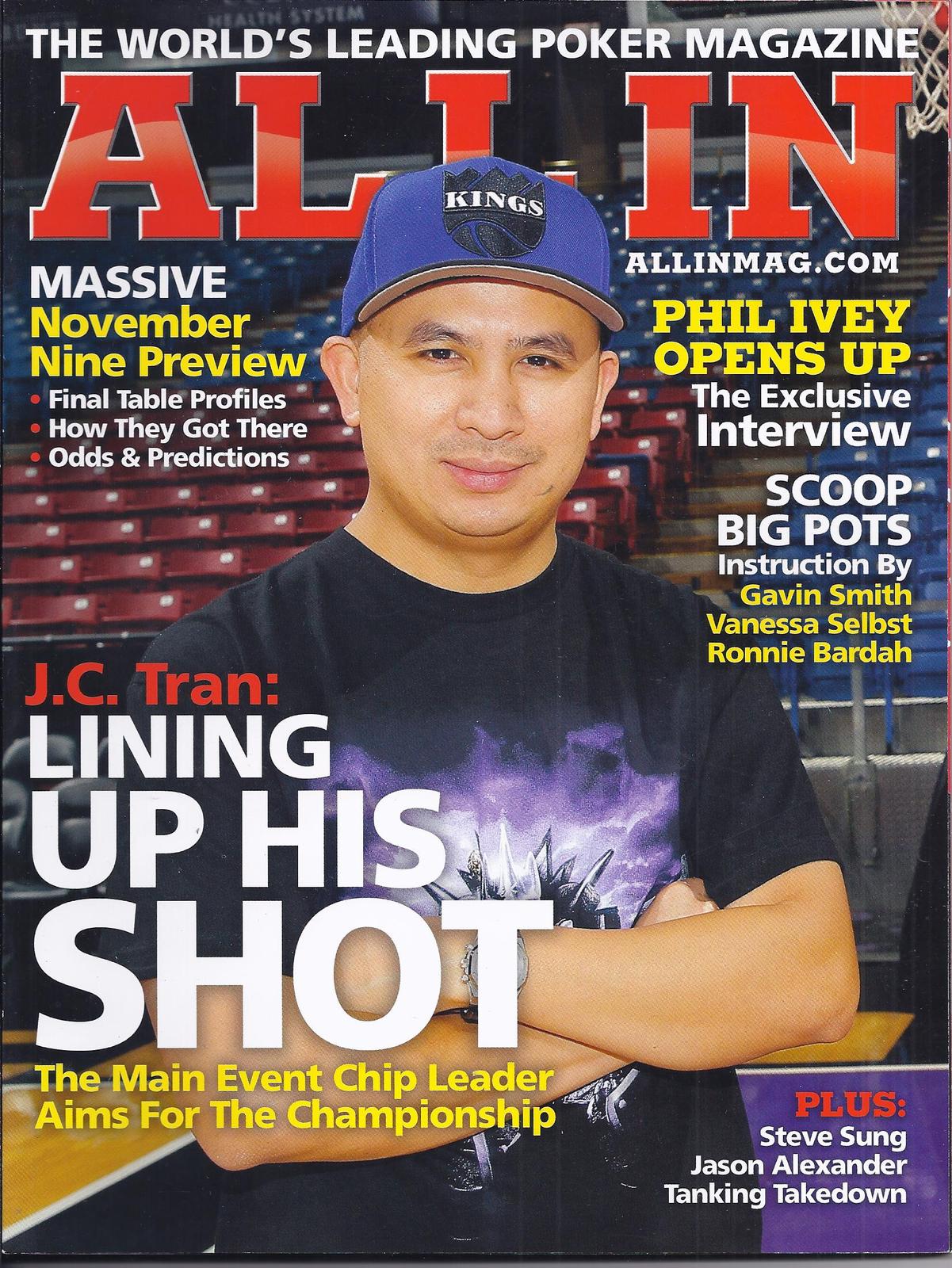 This is the FALL 2013 issue of ALL IN Las Vegas Poker Magazine, featuring J.C. TRAN, lining up his shot at the Main Event.