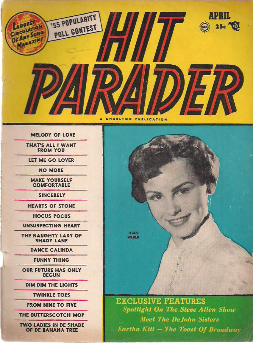 HIT PARADER Magazine April 1955 Joan Weber cover, Steve Allen show, Eartha Kitt