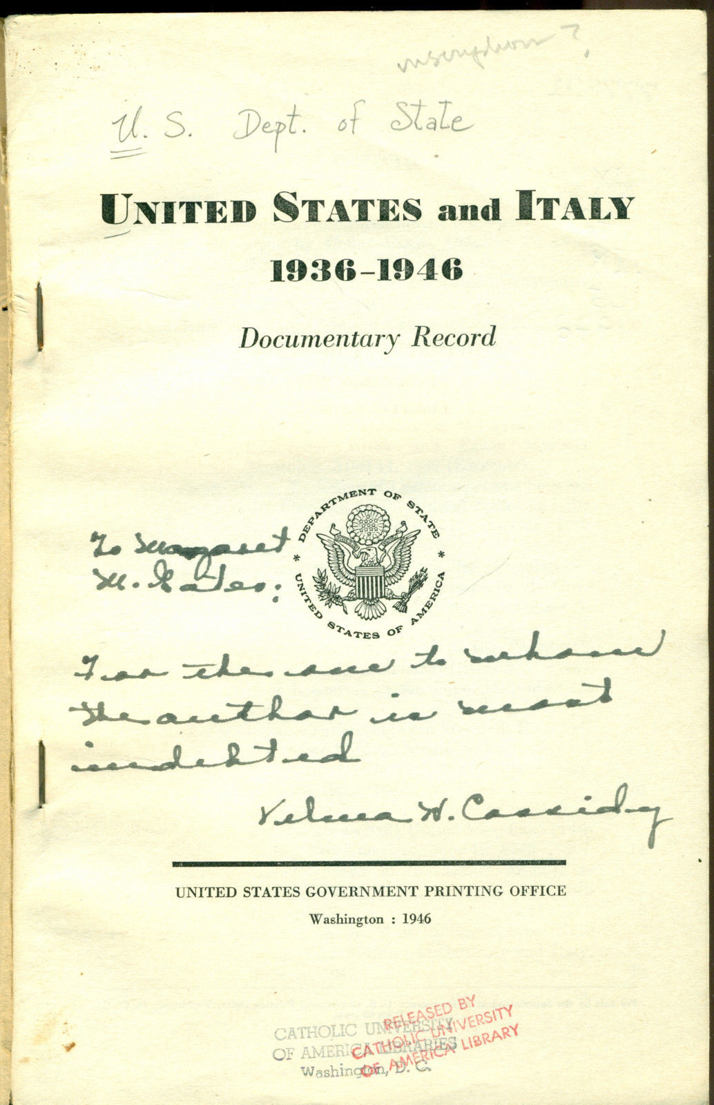1946 UNITED STATES and ITALY 1936-1946 U.S. Department of State autographed book
