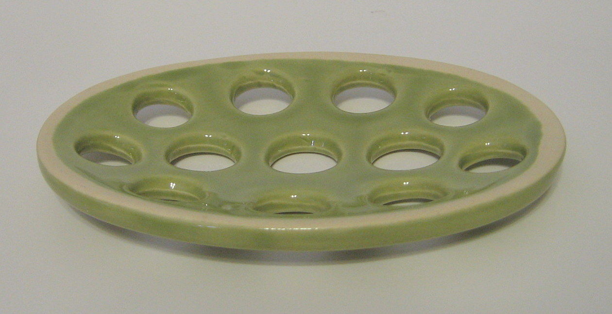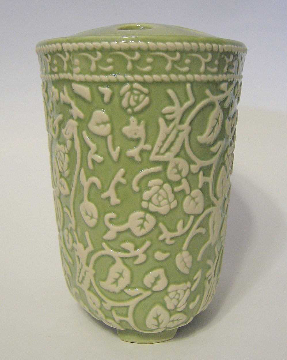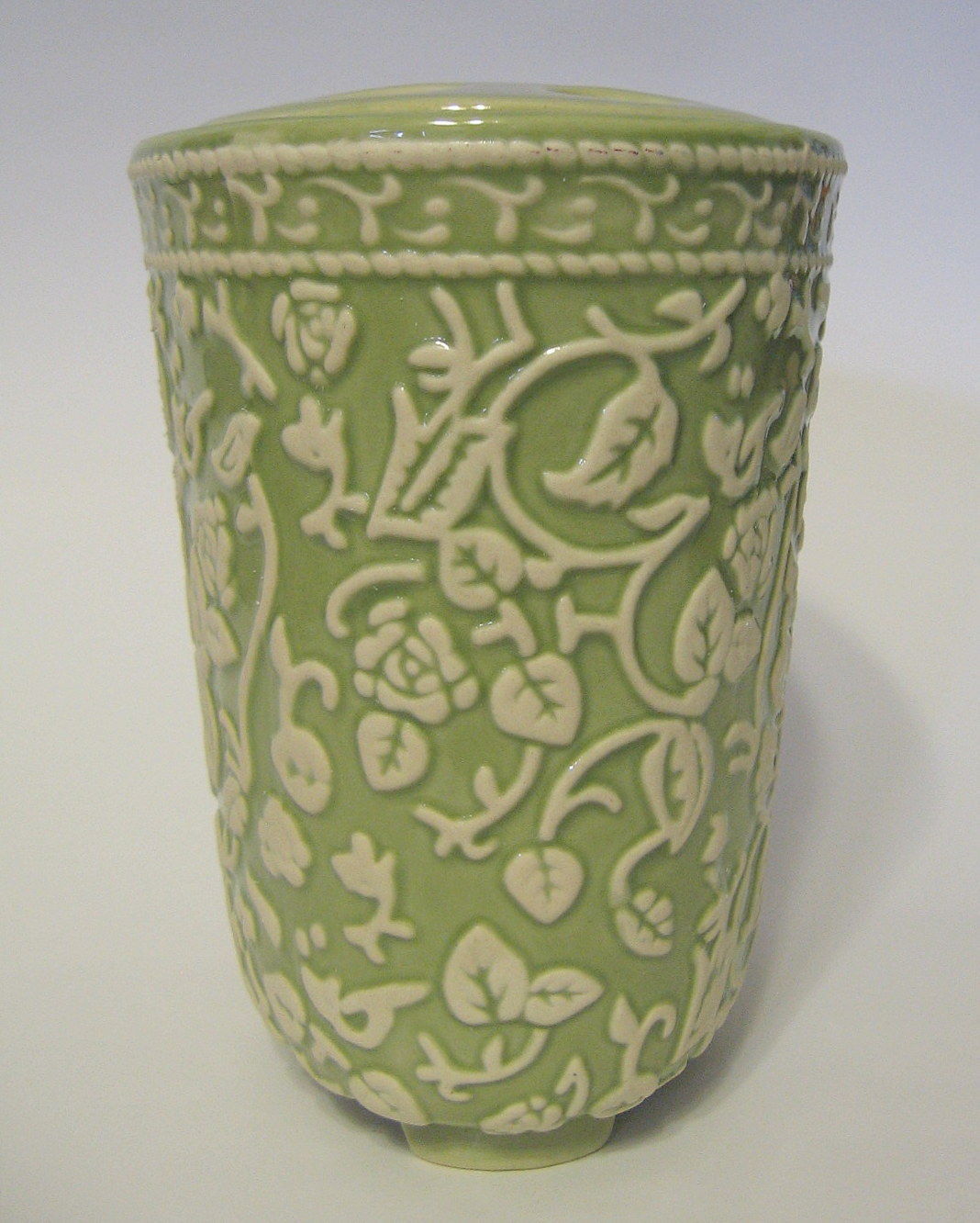 Color: Crab Apple Green with Ivory Bisque Designs.