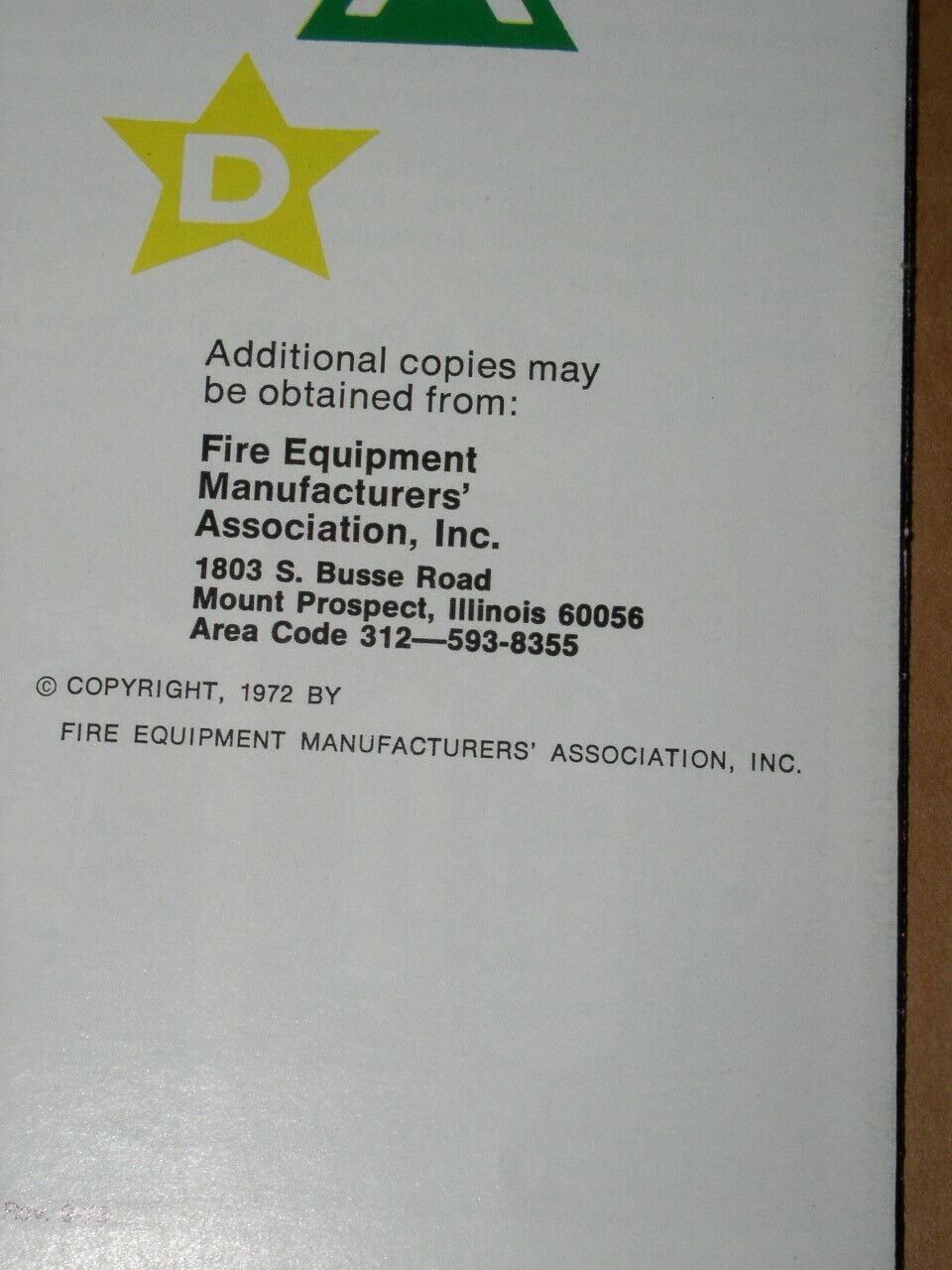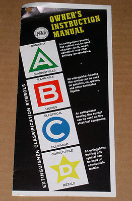 This is a vintage brochure entitled, "FEMA Owner's Instruction manual". Dated 1972 by Fire Equipment Manufacturers' Association, Inc. Subject is fire extinguisher care and usage.