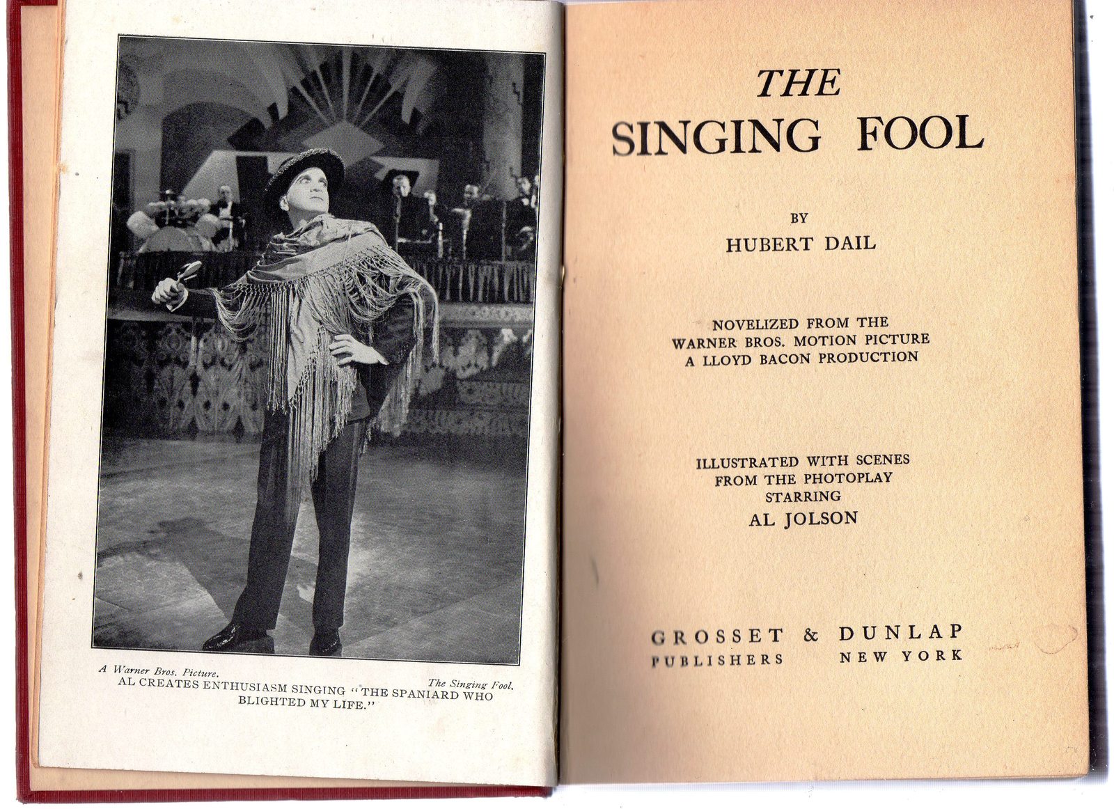 Very attractive copy. Former owner's ink name inside front cover. Text is clean and unblemished. Photo illustrated with still from the Warner Brothers Motion picture starring Al Jolson. Published by Grosset Dunlap: New York, 1929