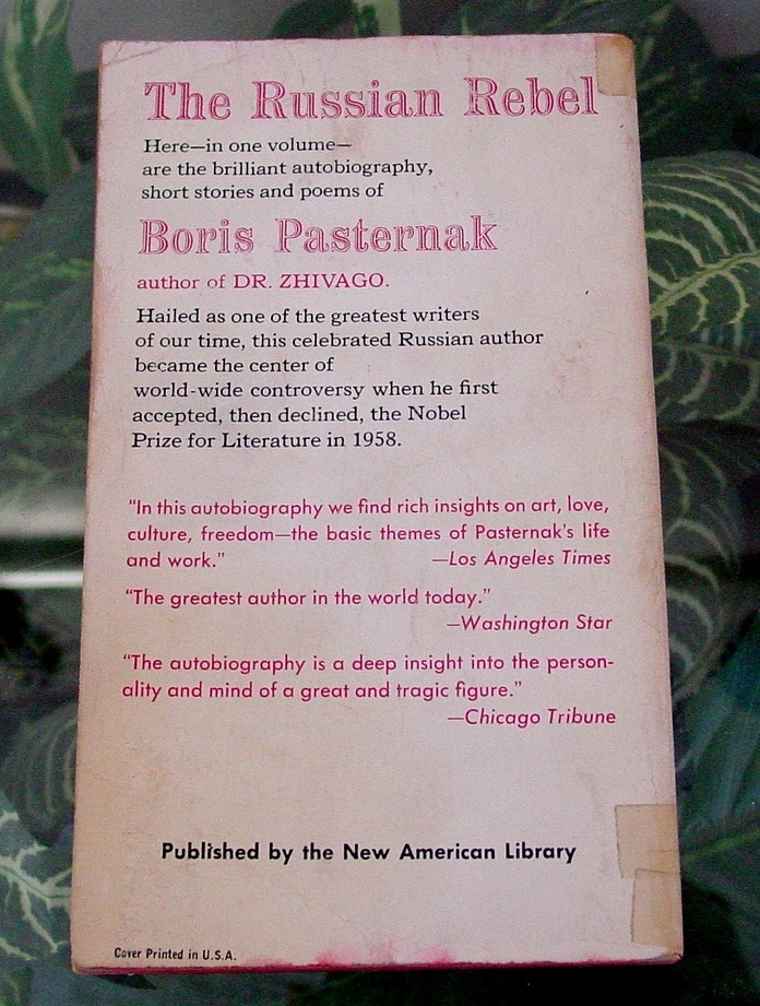 Autobiography. Boris Pasternak, author of Doctor Zhivago. Signet D1669. As stated First printing, June 1959. Tight, clean copy in good condition. Appears unread. Some cover creases and storage wear (please see pictures).