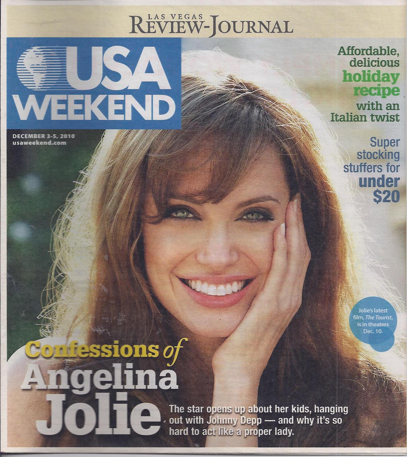 USA WEEKEND by Las Vegas Review Journal December 3 - 5, 2010 issue features on cover, Confessions of ANGELINA JOLIE.