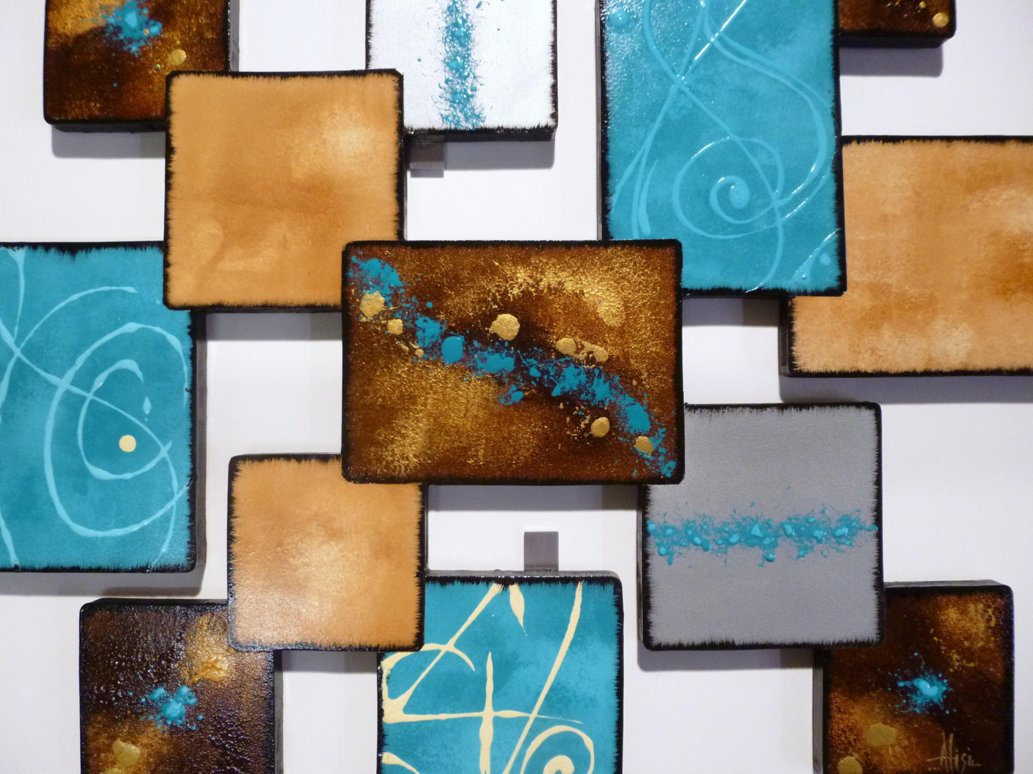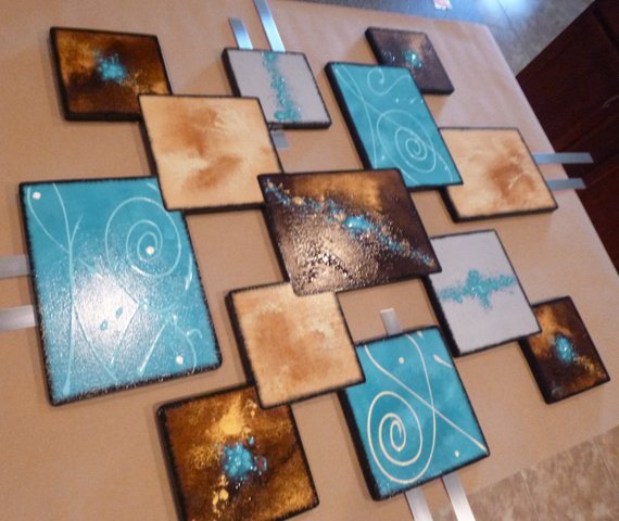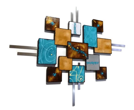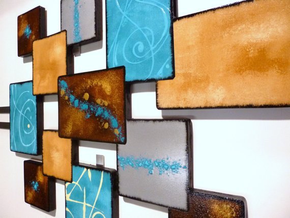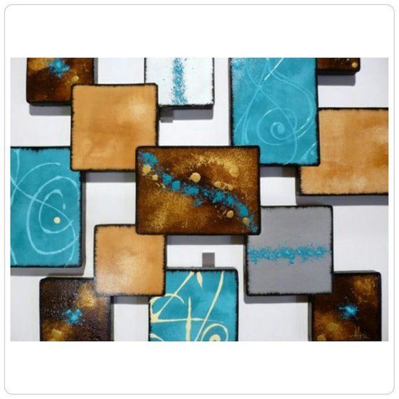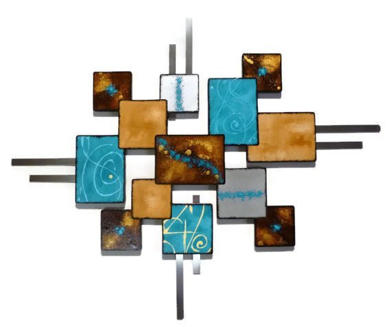 Turquoise & Brown Wood with metal Wall and 50 similar items