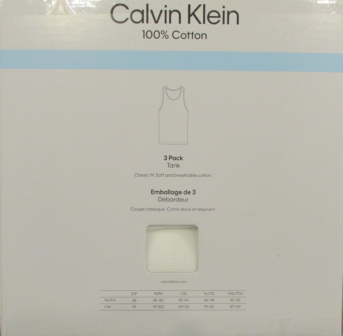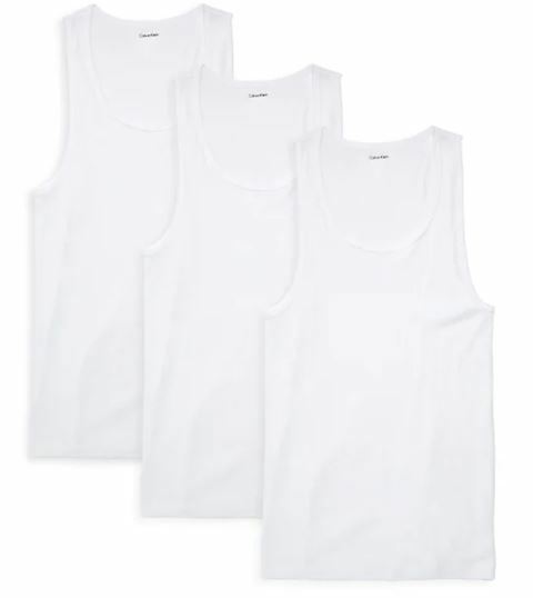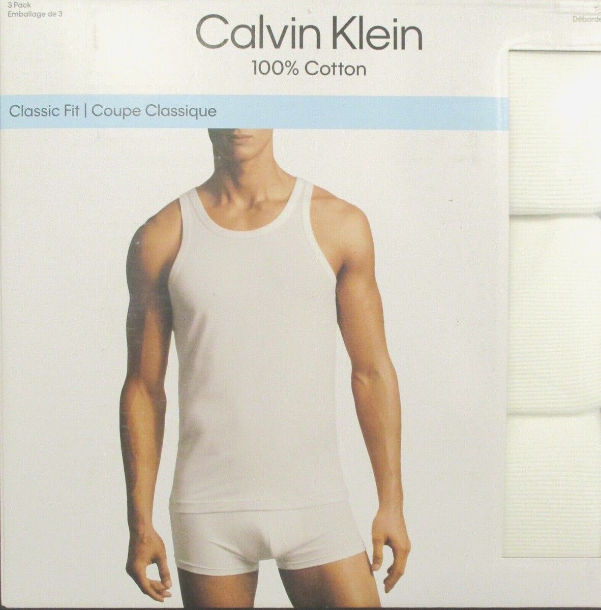 3 New Calvin Klein 100% Cotton White Rib Tank T-Shirts