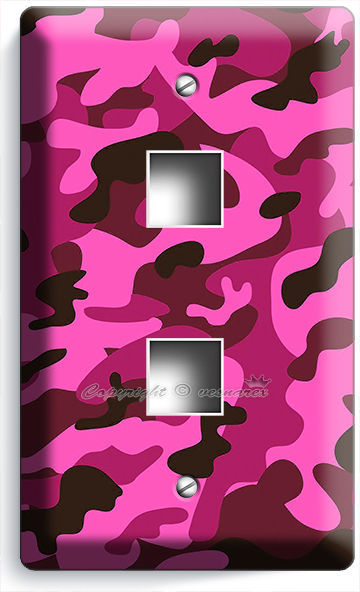 PINK GREY CAMO CAMOUFLAGE LIGHT SWITCH OUTLET WALL PLATE COVER GIRLS BEDROOM ART