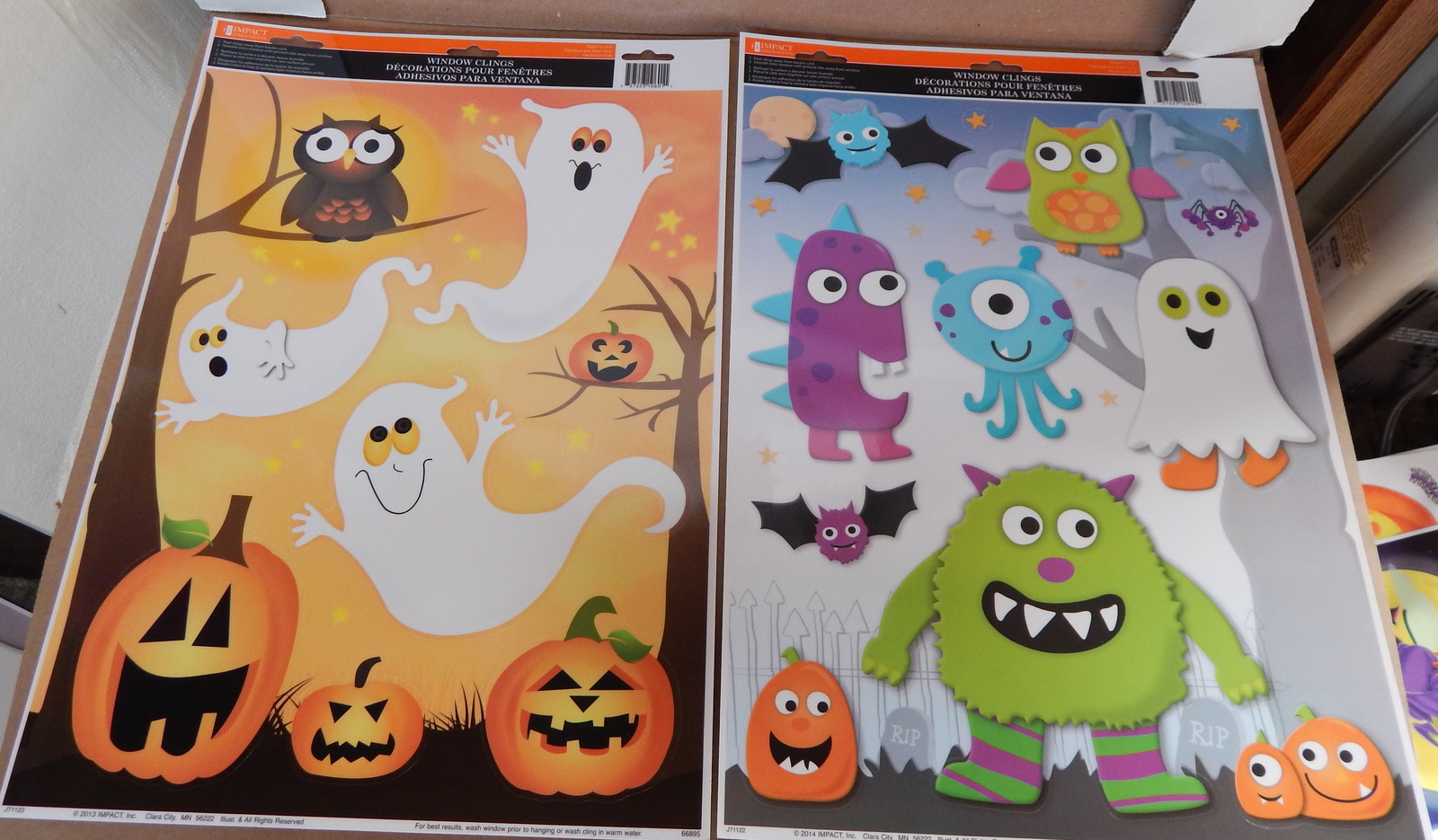 Halloween Window Clings 12" x 15" 2ea Impact Innovations USA Pumpkins Owls 68N