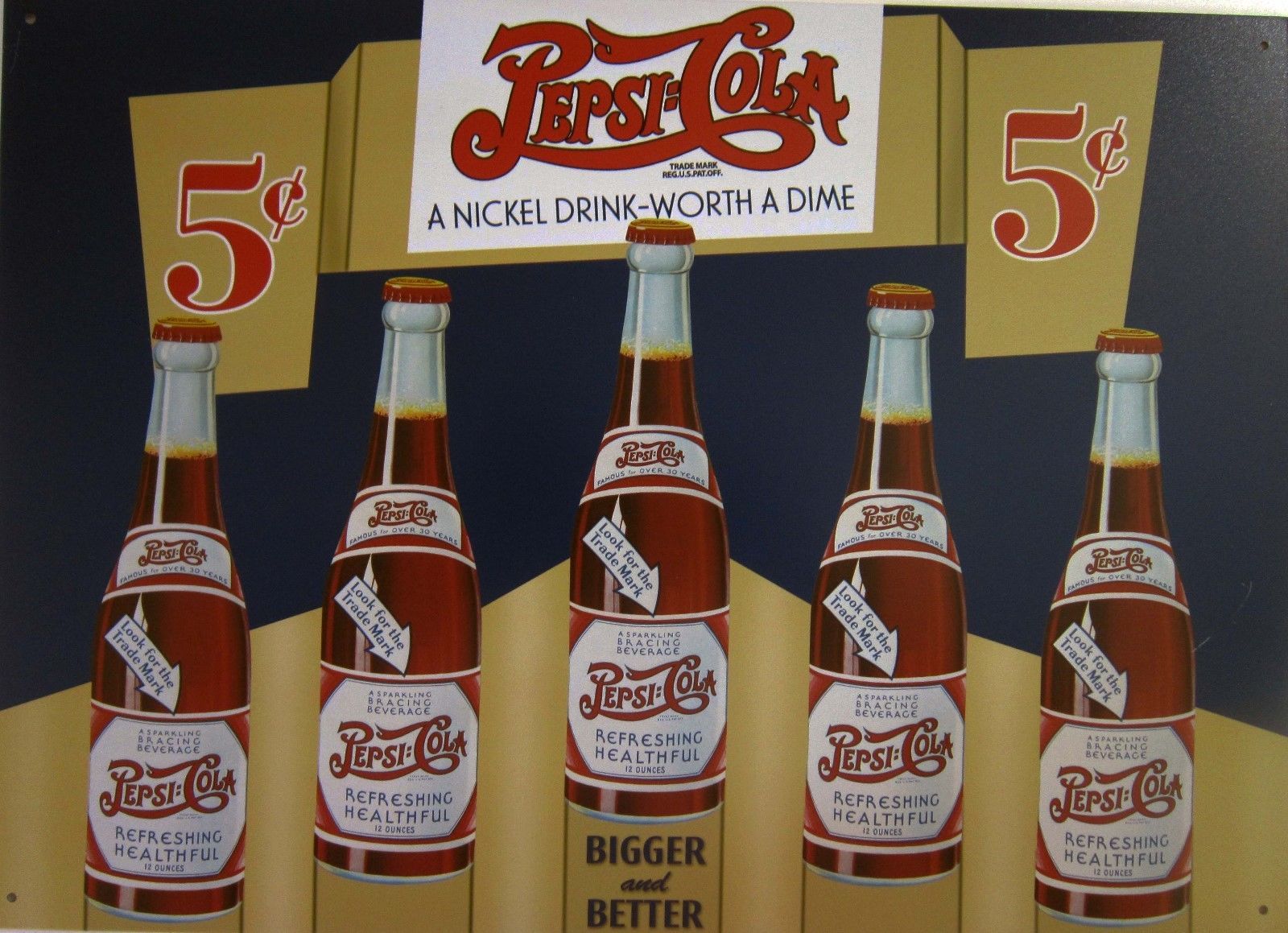 Pepsi:Cola Nickle Drink-Worth A Dime Metal Sign