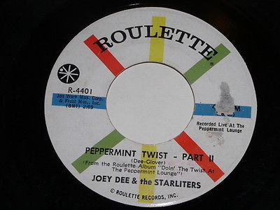 This is a vintage 45 rpm phonograph record by Joey Dee The Starliters, entitled, "Peppermint Twist". Flipside: "Part II". Record label: Roulette R-4401.