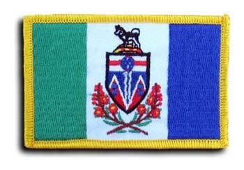 Our rectangular patch features the Yukon Territory flag with a gold embroidered border. The patch can be sewn on or ironed on. Actual size is approximately 2.25" x 3.25".